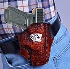 100% GENUINE LEATHER 100% HANDMADE ★ Specially Selected Cowhide Leather With Strong Stitching. ★ The thickness of the leather used is usually 3 - 3.2 mm. ★ Easy Smooth Insertion, Carry and Retrieval of Your Handgun. ★ Double stitched areas are applied to protect the product form, increase durability and visual quality. ★ The open top design offers a swift draw and presentation, while detailed molding provides secure retention. ★ Thanks to the holster shield in the holster, it prevents the gun from contacting the body. ★ Thanks to its belt entry from 2 different angles, it provides the opportunity to carry your weapon in a diagonal and vertical position. ★ Cover edges are carefully painted by hand with the help of a small sponge. ★ After all stages, 2 coats of varnish are applied to the cover. In this way, it prevents negative factors such as water, moisture and sweat that can damage the holster. ★ The cowhide used in our products is completely natural and does not contain any chemicals. ★ There will be a custom charge on holsters made for specially altered handguns. Please email for information.