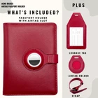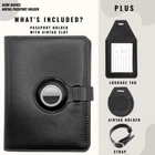Acme Basics Passport Holder with Built-In AirTag Slot PLUS Luggage Tag & Addt'l AirTag Holder Product Description: Acme Basics Passport Holder with AirTag slot Leather Wallet Accessory for Travelling is the perfect way to keep your important documents secure and organized while travelling. This leather wallet accessory holds it all in one place: passports, restrictions cards, ID, boarding passes, and credit cards. Its sophisticated style and superior quality make it perfect for anyone looking for a travel-friendly passport holder. Product Features: High Quality Leather: The high-quality genuine leather is durable and stylish and will stand up to the rigors of travel. Leather Wallet Cover & Card Protector: The premium leather wallet cover of the Acme Basics Mens Passport Holder offers superior protection for all your essential cards, travel documents, and currencies during your travels. AirTag Wallet Accessory: This passport holder includes an integrated Apple AirTag wallet to keep your most important items safe and secure while travelling. Waterproof Protection: The sturdy materials and reinforced seams make this passport holder waterproof, providing further practicality and security for all your travel needs. Versatile Design: This passport holder is suitable for men and women, featuring a classic design with customizable engraving service options available in case you want a personalized touch for your travels! What's in the box: 1 High Quality PU Leather Passport Holder With Built-In Air Tag Slot 1 Luggage Tag 1 AirTag Holder 1 Strap Return Policy: 100% MONEY BACK. We hope you'll love our Passport Holder. If you're not completely satisfied, or if this product isn't suitable for your needs, just return them within 30 days and we'll issue a full refund