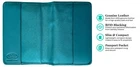 Leather RFID Passport Holder Cover Main product features: 100% genuine leather Contains advanced RFB (Radio Frequency Blocking) technology. Dimensions: 4" x 5.75" closed Lightweight and compact design This passport cover is a must for any traveler. Made from 100% genuine leather, it is soft yet sturdy and able to hold up to the rigors of traveling. Keep your passport in good shape for years to come with this passport case. The passport holder has a Radio Frequency Blocking (RFB) technology to prevent personal information from being stolen by thieves using scanners. One less thing to worry about when you are traveling. Includes slip pocket on the outside back cover. The passport holder measures 4” x 5.75” when closed. Choose from the following colors: Antique Saddle Black Bright Pink Chambray Moss Green Navy Teal White
