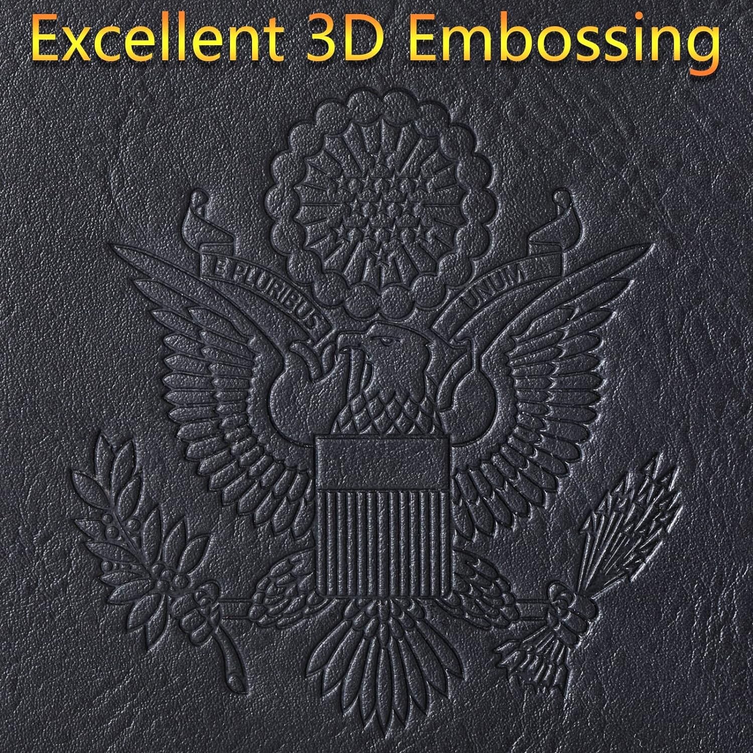 100% Money Back Guarantee if you are not satisfied with your purchase! _______________________ Description: GIFT - Our passport holder with AirTag slot is equipped with a rotating metal pen and a metal pin, which is used to change SIM card on your phone when you travel internationally. And the pen is convenient for you to fill in relevant information when you transit. International travel must haves! PASSPORT AND AIRTAG HOLDER COMBO - The built-in holder for Apple Air Tag combine passport wallet and AirTag ideally to make sure you never lose your passport wallet again. Misplaced or lost your passport wallet? Keep track of and see where you last had it alongside friends and devices in the Find My app. The AirTag passport wallet does not come with an Airtag. PREMIUM SYNTHETIC LEATHER AND DETAIL ORIENTED - The passport wallet with airtag holder is beautifully crafted with premium synthetic leather, which is durable, touch soft and comfortable. They are crafted with great attention to detail. Each passport wallet is rigorously examined before it leaves the factory. If our travel wallet doesn't meet the highest standards then we don't sell it. WATER RESISTANT HOLDER / RFID BLOCKING - Passport cover with Built-in RFID Blocking material prevent personal information disclosure, such as ID cards, credit cards, CDC vaccination card, driver license and passport, and keep your personal information securely everywhere. What’s more, our passport case is water resistant, so you don’t have to worry about getting your passport and vaccine card wet during the journey. IDEAL GIFT FOR TRAVELLER - Our travel wallet come in a beautiful gift package which is full of tourism elements. It make for an ideal gift for both men and women. Yet the beautiful passport cover of Great Seal 3D embossing have tried to put into feelings for patriotism and love for the motherland. Each United States Great Seal 3D Embossing on the passport cover is crafted to the highest standards, we can’t tolerate those vulgar embossings on the market.