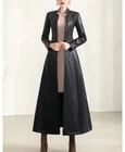 This black leather trench coat by Todays Woman is a vintage piece with a classic and retro appeal. The mid-length coat features a button closure, long sleeves, and a belted waist for a flattering silhouette. Made from soft leather with a polyester lining, it exudes a biker and Y2K vibe, perfect for a casual spring look. The coat is designed with a collared neckline and is in a size 12 (UK size M) with a regular fit, making it a timeless addition to any woman's wardrobe.