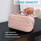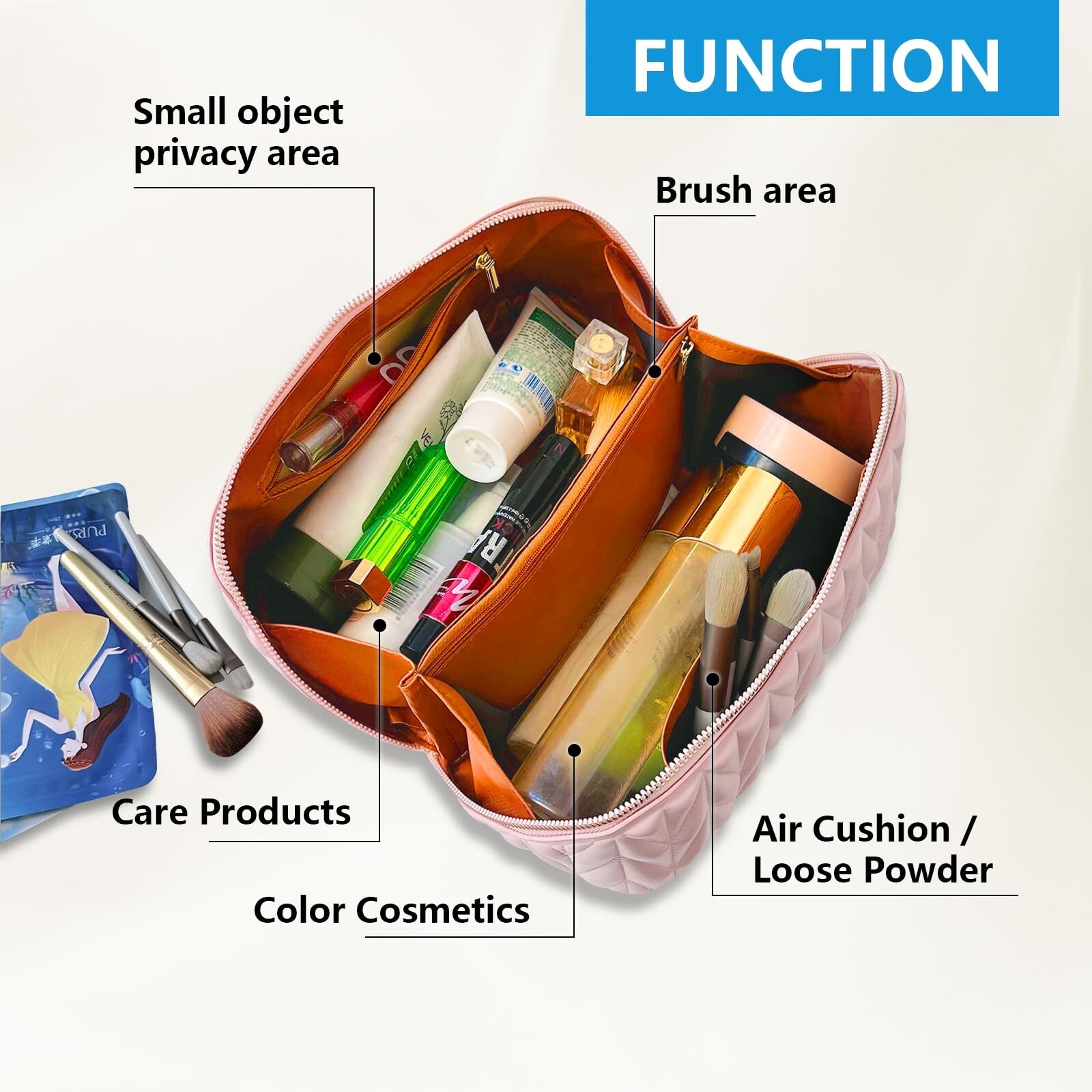 Makeup Bag, Leather Waterproof Portable Travel Toiletry Bag, Open Flat Compartment Cosmetic Bag for Toiletries Accessories Brushes, Make Up Bag Pink Product Details Color: Pink Brand: Eowihor MPN: S-101 UPC: 752790231316 EAN: 0752790231316 Product Dimensions: 9.8 x 5.1 x 4.3 inches Item Weight: 9.6 ounces Country of Origin: China Item model number: S-101 Detailed DesignThis Pink Wheatsheaf Cosmetic Bag has 5 divisions inside the makeup bag can well divide your skincare products, makeup and makeup tools, easy to store items in an orderly manner. And one of the small pockets on one side is zipper design, convenient to put some small or private objects. The zipper is made of exquisite hardware, smooth and texture. Convenient access The wide opening design of the makeup organizer can be opened 180, so you can see all the cosmetics at a glance. It can also be closed easily and quickly after use. Large Capacity DesignThis make up bag for woman measures 9.84*4.33*5.12 inches, which provides plenty of space for your cosmetics and toiletries, easy to store and more convenient for traveling. Excellent Material The fabric of this cosmetic Bag is made of high quality PU leather, soft, lightweight and durable. The waterproof material can be easily cleaned with a damp cloth or wet paper towel if cosmetics are accidentally spilled. Quality After-sales In case you have any questions or need help with our cosmetic bag, you can contact us at the first time, we will help you solve the problem within 24 hours, so that you can have no worries after the sale.