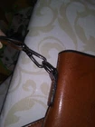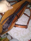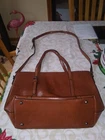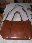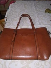 Leather Womens Bag. Real Leather. Multiple inside pockets zipperd .phone pocket inside and out. Zippered outside top. 16 in. Across. Removeable cross body strap. Nice details.