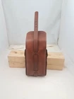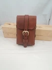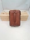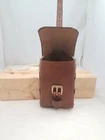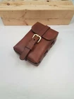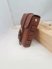 One Brown leather ammo pouch. For hunting, cosplay, or just extra storage. Fits a 3 inch belt or smaller. Solid brass buckle and Chicago screw rivets. Inner Dimension: 6 inch x1.5 inchx 4 inch. Color: dark brown Handmade in my workshop in Ohio. Please let me know if you have any questions.