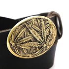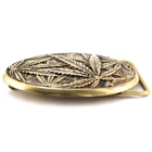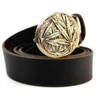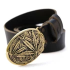 Leather belt with brass buckle " Cannabis leaf ". It is probably one of the most popular plants in the world :-) Belt buckle? Why not :-) Solid Belt Buckle - Buckles are cast from brass or german silver (an alloy of copper, nickel, and zinc). After casting, each buckle is processed manually. After processing, the buckle is covered with a patina and polished one more time 100% Top Grain Leather Belt | Best quality - The belt is made of a solid piece of leather, which means it will serve you for a long time. Belt width : 1.5 inch (3.8cm) wide. Top grain leather belts may have wrinkles, scars, scratches that are inherent characteristics, and natural beauty calfskin leather. Adjustable length - Our standard belt length: 47-48 inches (120-125 cm). If you need more length, let us know in the comments! Easy to adjust! Our all-belts package has an instruction inside which helps you easily shorten the belt by yourself. The buckle is attached to a leather belt mount, which is connected to a belt with a screw. To shorten the belt should: 1. Unscrew the screw that holds the buckle 2. Cut the excess skin, according to your size 3. Make a hole for the screw 4. Fasten the buckle to the belt The parcel comes complete with a crafted box and a leaflet with a product description. Buckle sizes: 2.44'' x 3.39'' (62х86 mm.) Belt's length: 47.2"- 49.2" (120-125 cm). Belt's width: 1.5" (45 mm). Made in Ukraine!