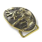 Leather belt with handmade brass buckle “ Deer ” This buckle depicts one of the most desired trophies for every hunter. Deer have always had a central role in mythology throughout all ancient world. In several cultures, it was considered to be a sacred animal, a messenger to the gods. Its image was often used in prehistoric hunting scenes. Deer have also been an integral part of literature pieces, heraldry and moreover, it was extremely significant in economy development as people have been hunting deer for really long time. Buckles cast in brass. After casting, each buckle processed manually. After processing, the buckle is covered with patina and polished one more time. The buckle is attached to a leather belt mount, which is connected to a belt with a screw, which makes it easy to shorten the belt. To shorten the belt should: 1. Unscrew the screw that holds the buckle 2. Cut the excess of skin, according to your size 3. Make a hole for the screw 4. Fasten buckle belt The parcel comes complete with crafted box, polishing sponge and a leaflet with a product description and scheme how to shorten the belt. The belt is made of genuine calf leather. Buckle size: 2.7"x3.5" (70x90mm) Average length of the belt: 47-48" (120 cm) and can be longer at your request. Width of the belt: 1.5" or 1.8" (38 or 45 mm) Made in Ukraine!