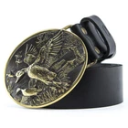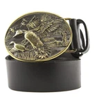 Leather belt with brass buckle "Mallard" The buckle is created based on ancient well-known men's hobby - duck hunting. It is fresh air, and sports passion, and communication with four-legged and double-legged friends. To avoid odd words, every hunter has its own personal meaning in this process. We hope everyone will find something for themselves in this belt. Solid Brass Belt Buckle - Buckles are cast from brass. After casting, each buckle is processed manually. After processing, the buckle is covered with a patina and polished one more time. 100% Top Grain Leather Belt | Best quality - The belt is made of a solid piece of leather, which means it will serve you for a long time. Belt width : 1.5 inch (3.8cm) or 1.8 inch (4.5cm) wide. Top grain leather belts may have wrinkles, scars, scratches that are inherent characteristics, and natural beauty calfskin leather. Adjustable length - Our standard belt length: 47-48 inches (120-125 cm). If you need more length, let us know in the comments! Easy to adjust! Our all belts package has instructions inside which help you easily shorten the belt by yourself. The buckle is attached to a leather belt mount, which is connected to a belt with a screw. To shorten the belt should: 1. Unscrew the screw that holds the buckle 2. Cut the excess skin, according to your size 3. Make a hole for the screw 4. Fasten the buckle to the belt The parcel comes complete with a crafted box, polishing sponge and a leaflet with a product description. Buckle sizes: 2.75"x 3.54" (70х90 mm). The average length of the belt: 47-48" (120 cm) and can be longer at your request. Width of the belt: 1.5" or 1.8" (38 or 45 mm) Made in Ukraine!
