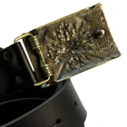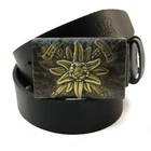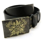 Leather belt with brass buckle " Edelweiss ". The basis of the buckle is the new logo of the Ukrainian Mountainous Infantry - a picture of the flower of Edelweiss and two Hutsul axes. Edelweiss flower is revered by all mountain nations as a symbol of courage and hardiness. In the Carpathians, this flower is especially respected, where it is called "silk mace". Not for nothing the mountain military units of many countries have chosen the edelweiss as a mascot. In the Ukrainian performance, the emblem is complemented by two bartks, the legendary hatchet of the Hutsuls. Solid Belt Buckle - Buckles are cast from brass or german silver (an alloy of copper, nickel, and zinc). After casting, each buckle is processed manually. After processing, the buckle is covered with a patina and polished one more time 100% Top Grain Leather Belt | Best quality - The belt is made of a solid piece of leather, which means it will serve you for a long time. Belt width : 1.5 inch (3.8cm) or 1.8 inch (4.5cm) wide. Top grain leather belts may have wrinkles, scars, scratches that are inherent characteristics, and natural beauty calfskin leather. Adjustable length - Our standard belt length: 47-48 inches (120-125 cm). If you need more length, let us know in the comments! Easy to adjust! Our all-belts package has an instruction inside which helps you easily shorten the belt by yourself. The buckle is attached to a leather belt mount, which is connected to a belt with a screw. To shorten the belt should: 1. Unscrew the screw that holds the buckle 2. Cut the excess skin, according to your size 3. Make a hole for the screw 4. Fasten the buckle to the belt The parcel comes complete with a crafted box and a leaflet with a product description. Buckle sizes: 2.1"x 3.2" (54х83 mm). Belt's length: 47.2"- 49.2" (120-125 cm). Belt's width: 1.5" or 1.8" (38 mm and 45 mm). Made in Ukraine!