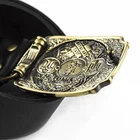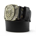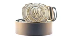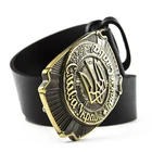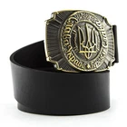 Leather belt with brass buckle " Glory to Ukraine! Glory to the heroes! " “Slava Ukraini! Geroyam Slava!” – “Glory to Ukraine! Glory to the heroes!” The first part of this slogan started to use, in the days of the Ukrainian People’s Republic (1917-1920 y.). In addition, the first part of the slogan was spread among the rebels Cold Ravine (Holodnyy Yar). The full, current version is the slogan used by the Ukrainian Insurgent Army as a greeting. Solid brass buckle - Buckles are cast from brass. After casting, each buckle is processed manually. After processing, the buckle is covered with a patina and polished one more time 100% Top Grain Leather Belt | Best quality - The belt is made of a solid piece of leather, which means it will serve you for a long time. Belt width : 1.5 inch (3.8cm) or 1.8 inch (4.5cm) wide. Top grain leather belts may have wrinkles, scars, scratches that are inherent characteristics and natural beauty calfskin leather. Adjustable length - Our standard belt length: 47-48 inches (120-125 cm). If you need more length, let us know in the comments! Easy to adjust! Our all belts package has an instruction inside which help you easily shorten the belt by yourself. The buckle is attached to a leather belt mount, which is connected to a belt with a screw. To shorten the belt should: 1. Unscrew the screw that holds the buckle 2. Cut the excess of skin, according to your size 3. Make a hole for the screw 4. Fasten the buckle to the belt The parcel comes complete with a crafted box, and a leaflet with a product description. Buckle sizes: 2.4"х3.3" (60х84 mm.) Belt's length: 47.2"- 49.2" 120-125 cm. Belt's width: 1.5" or 1.8" (38 mm or 45 mm) Made in Ukraine!