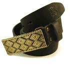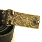 Leather belt with brass buckle " Krayka ". Krayka - is a traditional Ukrainian belt. Typically represented a woven wool fabric belt. The width (3-15 cm) and length (up to 3 meters) varied depending on the region, the status of the owner. The edges of the belt were decorated with tassels or timbers. Solid Belt Buckle - Buckles are cast from brass or german silver (an alloy of copper, nickel, and zinc). After casting, each buckle is processed manually. After processing, the buckle is covered with a patina and polished one more time 100% Top Grain Leather Belt | Best quality - The belt is made of a solid piece of leather, which means it will serve you for a long time. Belt width : 1.5 inch (3.8cm) wide. Top grain leather belts may have wrinkles, scars, scratches that are inherent characteristics, and natural beauty calfskin leather. Adjustable length - Our standard belt length: 47-48 inches (120-125 cm). If you need more length, let us know in the comments! Easy to adjust! Our all-belts package has an instruction inside which helps you easily shorten the belt by yourself. The buckle is attached to a leather belt mount, which is connected to a belt with a screw. To shorten the belt should: 1. Unscrew the screw that holds the buckle 2. Cut the excess skin, according to your size 3. Make a hole for the screw 4. Fasten the buckle to the belt The parcel comes complete with a crafted box and a leaflet with a product description. Buckle size: 1.58"x3.93" (40х100 mm) Belt's length: 47.2"- 49.2" (120-125 cm). Belt's width: 1.5" (45 mm). Made in Ukraine!