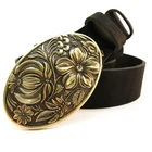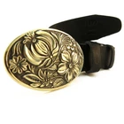 Leather belt with handmade buckle Petrykivka . Belt’s buckle designed as classic Ukrainian Petrykivka painting, which dates back to the times of the Zaporozhye Cossack's, who used it extensively in painting, wall decorations and household items. A distinctive feature of modern plant Petrykivka painting is, above all, the floral motif. The name of this folk art comes from the old Cossack village - Petrykivka (now - Petrykov district of Dnipropetrovsk region). Today Petrykov pattern is widely used in the book graphics, art industry, but from now in metal working. Solid Brass Belt Buckle - Buckles are cast from brass. After casting, each buckle is processed manually. After processing, the buckle is covered with a patina and polished one more time. 100% Top Grain Leather Belt | Best quality - The belt is made of a solid piece of leather, which means it will serve you for a long time. Belt width : 1.5 inch (3.8cm) or 1.8 inch (4.5cm) wide. Top grain leather belts may have wrinkles, scars, scratches that are inherent characteristics, and natural beauty calfskin leather. Adjustable length - Our standard belt length: 47-48 inches (120-125 cm). If you need more length, let us know in the comments! Easy to adjust! Our all-belts package has an instruction inside which helps you easily shorten the belt by yourself. - The buckle is attached to a leather belt mount, which is connected to a belt with a screw. To shorten the belt should: 1. Unscrew the screw that holds the buckle 2. Cut the excess skin, according to your size 3. Make a hole for the screw 4. Fasten buckle belt Buckle size: 2.44"x 3.74"(62х95 mm.) Belt's length: 47.2"- 49.2" 120-125 cm. Belt's width: 1.5" or 1.8" (38 mm or 45 mm) Made in Ukraine!