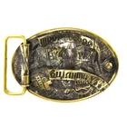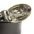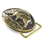 Leather belt with handmade brass buckle “Wild boar hunting” The buckle depicts wild boar - one of the most desirable trophies for any hunter. Strongly built, stocky body, weight up to 400 kg - all this makes boar not only a potential prey or a trophy but also a formidable opponent. Buckles cast in brass. After casting, each buckle processed manually. After processing, the buckle is covered with patina and polished one more time. The buckle is attached to a leather belt mount, which is connected to a belt with a screw, which makes it easy to shorten the belt. To shorten the belt should: 1. Unscrew the screw that holds the buckle 2. Cut the excess of skin, according to your size 3. Make a hole for the screw 4. Fasten buckle belt The parcel comes complete with crafted box, polishing sponge and a leaflet with a product description and scheme how to shorten the belt. The belt is made of genuine calf leather. Buckle Size: 2.75"х3.34" (70х84 mm) Average length of the belt: 47-48" (120 cm) and can be longer at your request. Width of the belt: 1.5" or 1.8" (38 or 45 mm) Made in Ukraine!