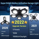 ✔️Sensitive Motion Sensor Garage Light -- Garage lights built in advanced microwave radar sensor, the light will be turned on automatically when people move within the range of 19.6-32.8ft around the garage, it's broader than normal motion sensing, sensing angle is 360° and very sensitive, it also can detect any movements even across the wall. Compared with normal led garage light, we design a individual button to turn on or off the motion sensor mode,it's more convenient and electricity-saving. ✔️illuminator 360 Led Garage Light Very Bright LED Chips -- The 5 light panels of the garage lights ceiling led can be adjusted by 90° to expand the illumination range, it can light up at least 270° area with no dead angles. The powerful LED modules with an output of 15000lm will keep your room super bright and saving 80% electric bill. This 150 watts garage light with motion sensor is equal to two 300 watts incandescent bulbs. ✔️Why Choose Paoicole Led Garage Light -- We use 1W LED beads instead of 0.5W LED beads used by most suppliers, it's ultra brighter than other garage light, and our each light Panel has at most 27pcs LED beads, so the heat generated during work is low, and the heat dissipation is fast, the service life of the lamp beads is longer. Many factories still rely on the number of the beads to increase wattage and lumens. The light will be easily broken. ✔️Durable & Widely Used -- Garage light ceiling led is made with premium plastic heat dissipated, high-temperature resistant, stable and durable under maximum performance. Motion sensor garage led light are widely used in garage, basement, warehouse, workshop, barn, attic, car shops, showrooms, workbench, parking lots, corridors, sheds, lofts, gyms, supermarkets, schools, hospitals, hotels, laundry rooms, wine cellars, studios and utility rooms. ✔️Easy To Install -- The garage auto on light is suit for E26/E27 base, easy to install, no tools required,no wiring and no professional electricians are needed, just screw it into a normal lamp receptacle. Just buy it with confidence!