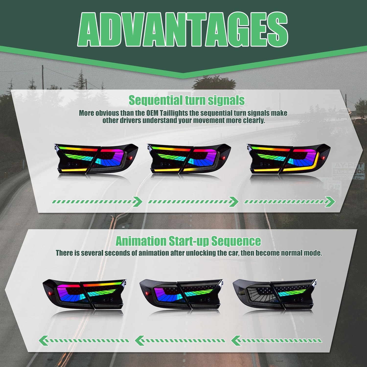 Led Tail Lights Compatible For Accord 10th Gen 2018-2022 with Breathing