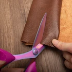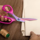 Left Handed Sewing Scissors for Fabric Cutting, Professional Sharp Heavy Duty Titanium Coating Forged Stainless Steel Multi-Purpose Shears for Leather, Dressmaking, Tailoring, Quilting, Home & Office, Art & School, 9 inch Note: There is some oil on the factory blades to keep the scissors smooth to use and prevent rust. Apply a little oil after each use to keep the blades lasting. Scissors are sharp, please keep them out of reach of children or toddlers. Ultra sharp and sturdy: The left-handed reverse design blades are made of high strength Stainless Steel, anti-rust and sturdy for use, with 3x hardness of common stainless steel and stays sharper longer Titanium coating blades: iridescent titanium coating adds an extra layer of protection, making the scissors more resistant to wear and corrosion. clorful blades not only pretty, but also resilient to adhesives such as glue and tape, making them suitable for almost any type of task True left-handed ergonomic handle: Ergonomically designed handle made of high-quality ABS material, the left-handed reverse-layout purple easy-grip handle offers a comfortable grip and precise control. This allows lefty users to have a comfortable experience during use Heavy Duty All-Purpose Scissors: Ideal for sewing, tailoring, quilting, and dressmaking. Perfect for cutting multiple layers of fabric, clothes, denim, jeans, leather, burlap, canvas, upholstery, vinyl, patterns, alterations, yarn, thread, ribbon, photos for scrapbooking, paper, cardboard, wrapping paper, and other arts & crafts for home or office use 9.3 Inch Long and 3.5 Inch Wide