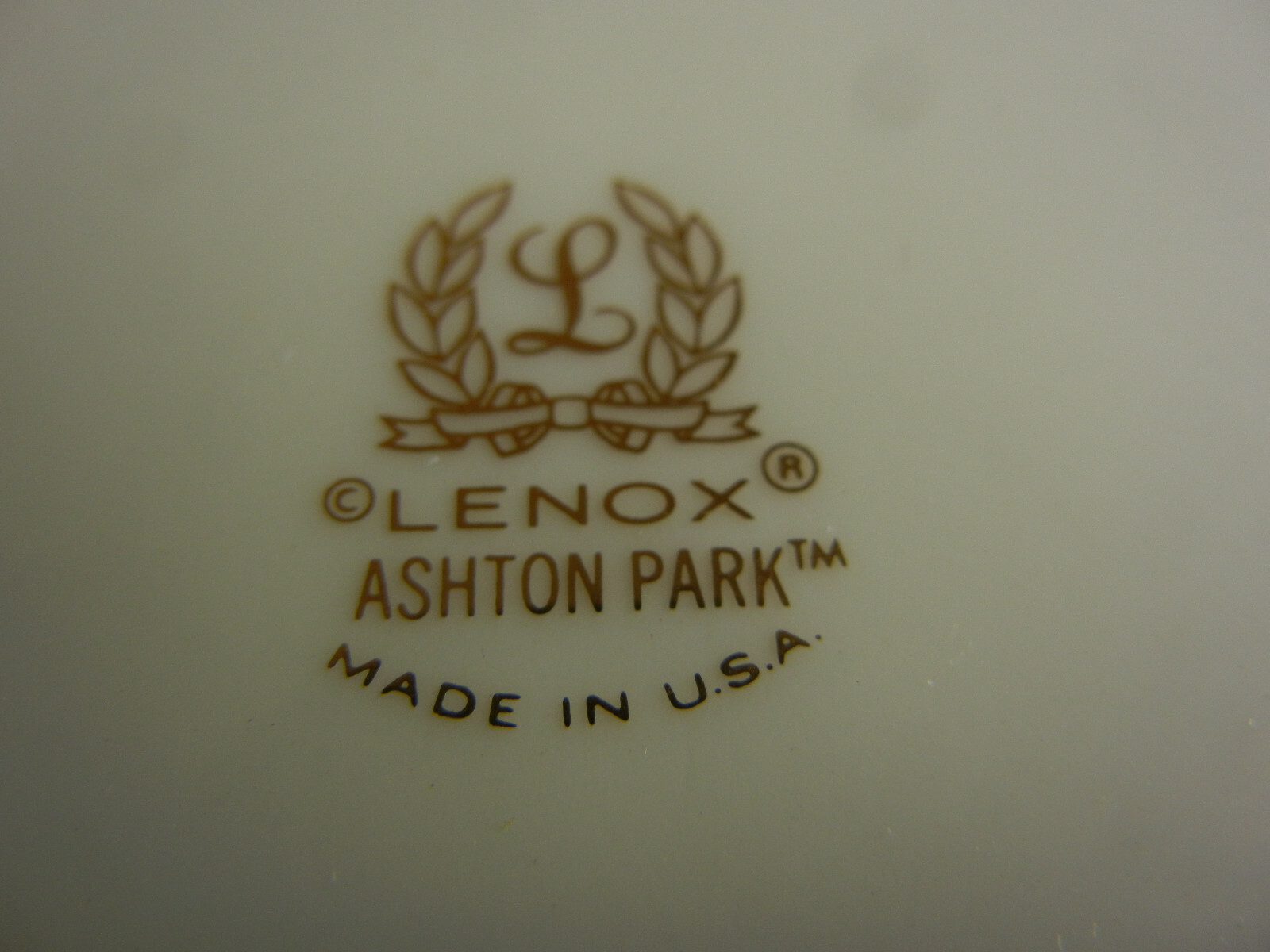 Manufacturer: Lenox China - Made in America Pattern: Ashton Park Item: Dinner Plate Size: 10 3/4" diameter Condition: Excellent Shipping for domestic and Canadian rates can be found in the item description. We will ship international and rates will be determined by location.