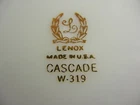 Manufacturer: Lenox China - Made in America Pattern: Cascade - Pattern W319 - Gold Trim Item: Dinner plate Size: 10 1/4" diameter Condition: Excellent Shipping for domestic and Canadian rates can be found in the item description. We will ship international and rates will be determined by location.