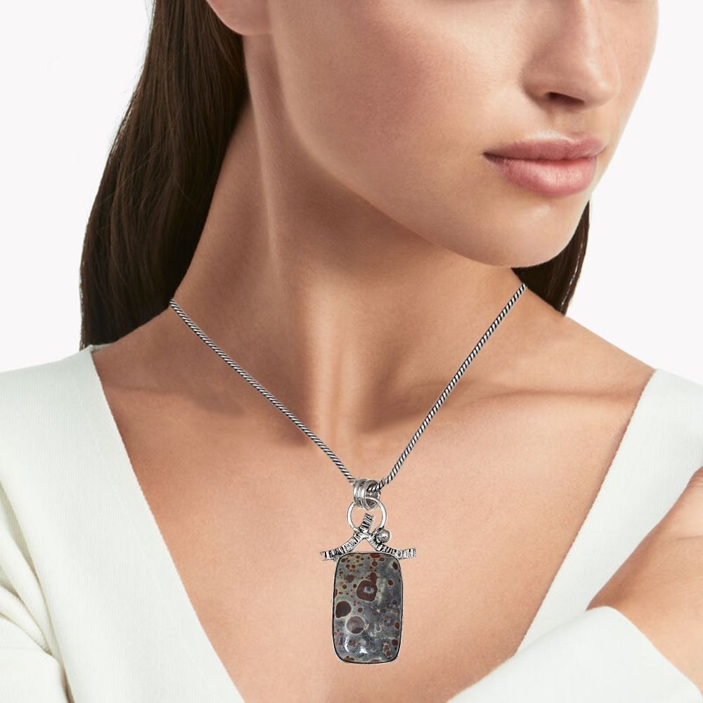 Leopard Skin Jasper Necklace Handmade Gemstone Jewelry 1.75 Inch