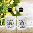 Leveled Up To Big Brother Gamers Gift Announcementmug Personalized Mug Video Game Lovers Funny New Big Brother Gift Idea Gaming Mug Product Details.. This high quality 11oz. ceramic white mug has a premium hard coat that provides crisp and vibrant color reproduction sure to last for years. Perfect for all hot & cold beverages. The highest quality printing possible is used. It will never fade no matter how many times you wash it. Material: 100% Ceramic. Print both sides. Dishwasher and Microwave Safe. High Gloss + Premium White Finish. Printed in the U.S.A. Personalized & Custom. We support personalized and custom mug to add custom, when placing an order, you can add notes to the "order note" in shipping address section. Also you can contact us directly via message. Shipping Info. Ready to ship in 1 to 2 business days, All products are made-to-order and proudly printed in the United States. Shipped by USPS and DHL, You will receive your order in 5-7 days. Replace & Refund. All products are defective during shipping broken, chipped will be replaced free of charge. You are not satisfied with the product, we will refund 100% money to you. If any other issues arise, please do not hesitate to message, we would be more than happy to assist you.