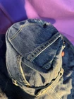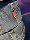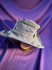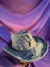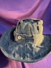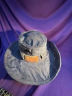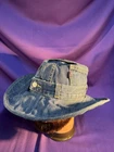 Levis Cowboy Hat 60 cm (23 5/8") inner circumference We measure using a sizing gauge for exact fit blue with edge fade brim is 3 7/8 inches wide This hat is made from a broken in pair of Levis 501 jeans. The band is made from waist band including the belt loops, front button, and hip patch There is some edge fade along the old seams the red Levi's logo tab is on the side of the crown back pocket on top of crown hand pocket on side of crown back pocket on side of crown If you are a Levis fan here is the ultimate custom piece. The brim has wire along the edge so that you can form the brim to your liking. We can make a similar hat in your size from our stock of Carhartt, Levis, Wranglers, etc., The hat is crushable except for the wire rim and will be shipped flat for international orders. recent feedback on our hats: Great hat~so unique! Packaged nicely, delivered fast!Thank you! What a wonderful seller to deal with. Thank you. 5 star Ebay seller very nice !! I love the HAT !! great fit and colors !!! Great product and great seller! Awesome seller fast shipping will buy from seller again I love the Carhartt cowboy hat so much I bought two more. Great hat! Packaged nicely, delivered fast!Thank you! inv:d1f4L "jayson"