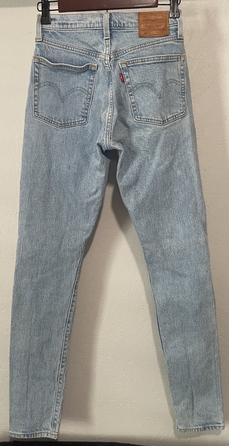 The product is a pair of Levi's Premium women's jeans in a solid blue color, featuring a skinny mid-rise fit with a button fly closure. Made from a cotton blend denim fabric, these jeans are machine washable and have a 5-pocket design. The Levi's 501 model is a classic and versatile style for everyday wear during the summer, fall, and spring seasons. With a size 26, these jeans are a fashionable and comfortable choice for women looking for a casual yet trendy denim option. The waist measurements and inseam are about 26x31. Please see pictures.