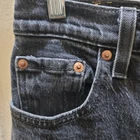 Levi's Premium Black Denim Jeans for women feature a high-rise, 5-pocket design with a button and zipper closure. The ankle-length jeans have an embroidered Big E logo and a distressed, light wash finish. Made of a stretchy cotton blend, these straight-fit jeans have a waist size of 24 inches and inseam of 28 inches. The retro-themed jeans are from Macao and have a regular fit, perfect for a vintage-inspired look. Wear it with a dressy shirt or casual one for the perfect look, Free shipping!