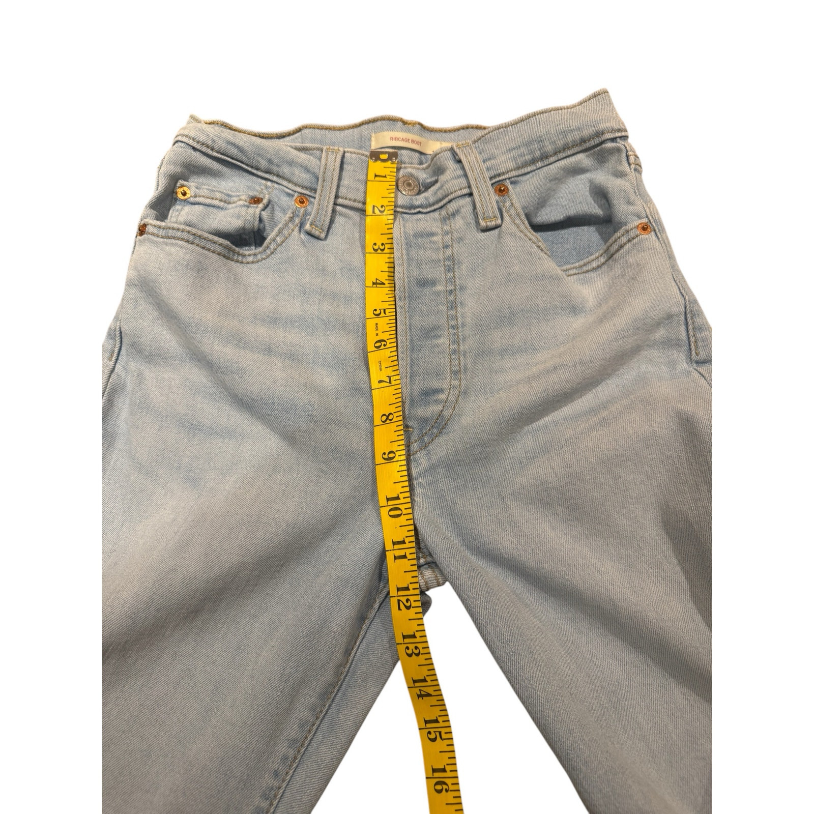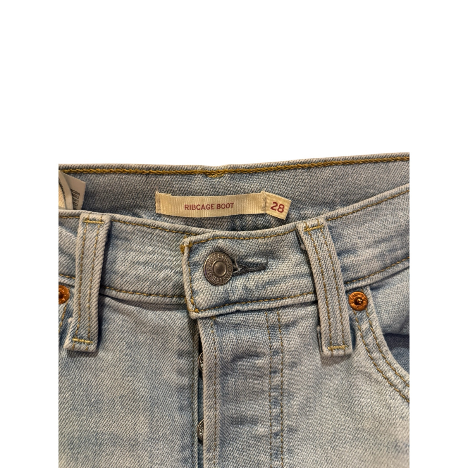 Levi's Ribcage Boot Jeans Size 28 Inspired by a pair of '90s-era vintage 501® Originals, the Ribcage's extra-high rise and button fly help define your waist. They're designed to elongate your silhouette and make you feel as amazing as you look. This one features a trendy bootbcut leg. Levis® highest high rise, now with a modern bootcut leg Made with an extra-high rise to help define your waist In great pre-owned condition. No flaws.