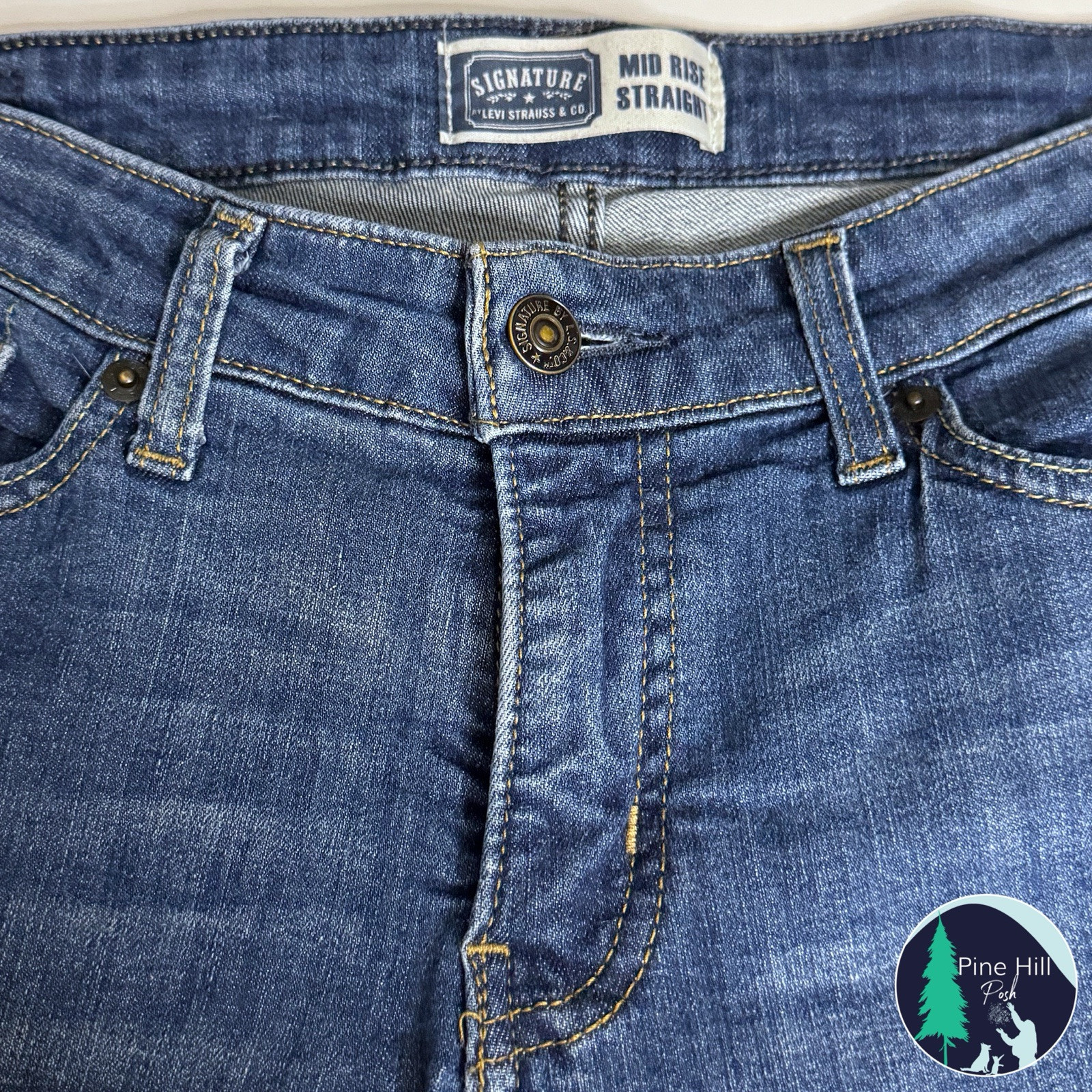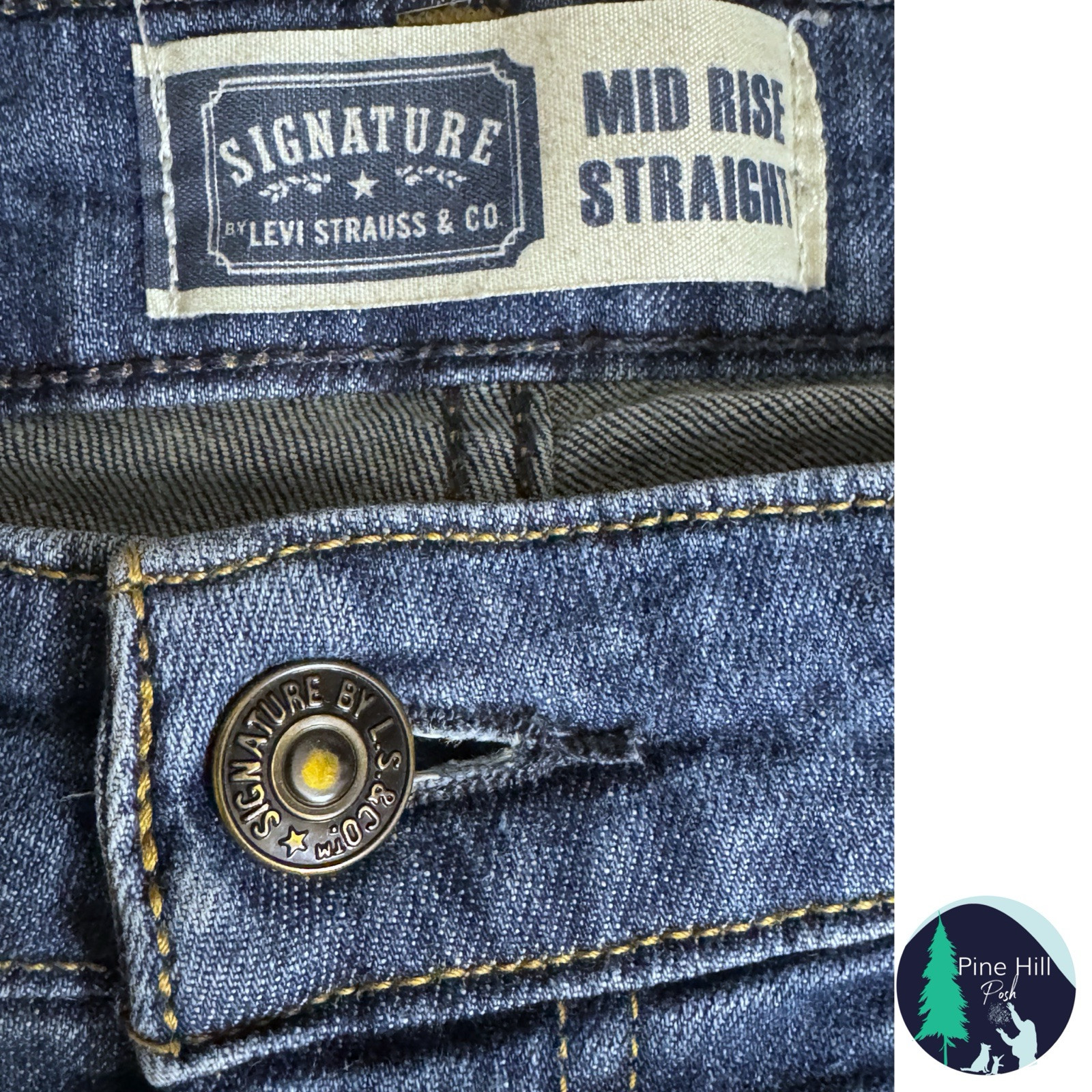 Women’s Levi Strauss & Co Signature Jeans … attractive medium wash … beautiful embroidered back pockets … timeless straight leg profile with comfortable mid-rise … breathable 99% cotton with 1% stretch … SEE CONDITION NOTE & PHOTOS. COMPARE MEASUREMENTS BELOW with a garment that fits well to ensure a good fit. PRELOVED ITEMS MAY VARY IN SIZE due to wash or wear. Features: breathable, embroidered, mid-rise, straight leg Size: 12M Approximate Measurements (laid flat): Waist 16.5”, Hips 18”, Inseam 30”, Length 40.5”, Front rise 9.5” Condition: Light stretch marks. See photos. No stains, tears, pilling. Color: Blue Fabric: Cotton / Elastane Care: Machine washable Feel free to ask questions. I want you to love your purchase! ❤️ COMBINED SHIPPING I’d love it if you check out my other listings & am happy to combine shipping. If purchasing multiple items, add them to your cart, pay, & I will gladly refund the extra shipping after I package & weigh the items. NOTE: If you purchase an item, but aren’t done shopping, please message me to let me know. Once I buy a shipping label for your order, I won’t be able to combine shipping charges. PINE HILL POSH is PET-FRIENDLY. I do my best to remove all dog & cat hair, but apologize if any sneaks into your package. It happens when you live with a curious black cat & a fluffy German shepherd/lab mix! If you have pet allergies, you may not want to buy from my shop. 🤦🏻♀️ I work to portray colors as accurately as possible. I’m not responsible for differences caused by various devices. I inspect every listing carefully & note any flaws I find, but nobody’s perfect! If you find something wrong when you receive your order, let me know right away. I’ll do my best to make it right. Crossposted
