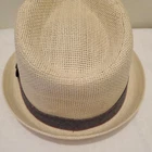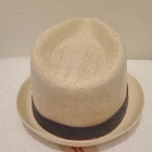 Levis fedora hat NWT natural size s/m blue banded. It is new with the tags. The blue band has red stitching.