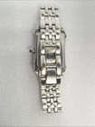 Elevate your style with this stunning Lg 925 ECCLISSI Diamonds Sterling Silver Ladies wristwatch. The watch features a beautiful two-piece strap made of sterling silver with a stunning diamond accent. The rectangular case also made of sterling silver houses a quartz movement and an analog display. The dial is adorned with stick indexes and diamond markers, adding a touch of luxury and elegance to the watch. This wristwatch is perfect for any occasion, whether you're dressing up for a formal event or keeping it casual for everyday wear. It's also a great addition to any watch collection. The watch is sold without papers or original packaging but is in excellent condition, ready to be cherished by its new owner.