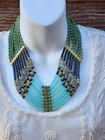 Lia Sophia BEAUTIFUL Aqua, Olive, Labradorite, antiqued gold, mixed material Goddess necklace. I have circled a few of the Labradorite chips showing their beautiful blue shimmer as I shifted light position, that you will only find with genuine Labradorite. This truly is a beautiful pre loved piece in excellent condition. This is a pre-owned item. Please look carefully at all pictures. I've not gone out of my way to clean it well so any item may be stepped up in looks with a good cleaning. Please ask questions, if you have any, before purchase. Happy shopping! đ