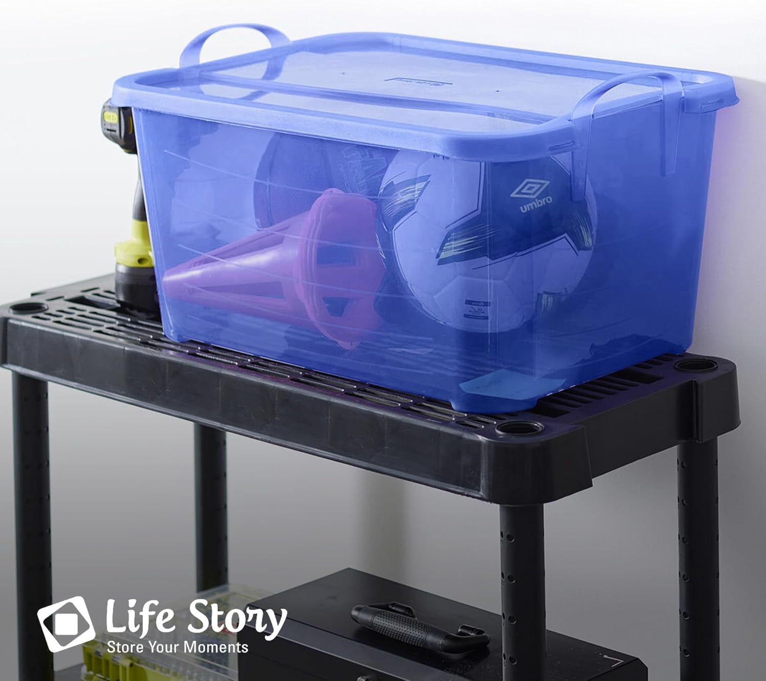 Life Story 6 Pack Heavy Duty Stackable Storage Bin, 55 Quart Home Organizer, Versatile Lightweight Locking Bins with Carrying Handles, Black/Gray Product Details Brand: Life Story Color: Black/Gray Material: Plastic Special Feature: Stackable Style: Modern Recommended Uses For Product: For Christmas Ornaments Product Dimensions: 23.6"L x 12.3"W x 16.9"H Capacity: 52.05 Liters Closure Type: Latch Water Resistance Level: Water Resistant Opening Mechanism: Snap Shape: Rectangular Pattern: Solid Number of Items: 6 Storage Volume: 52.05 Liters Number of Compartments: 1 Unit Count: 6.0 Count Item Package Quantity: 1 Assembly Instructions Description: No assembly required Manufacturer: Life Story Part Number: 77921 Is Discontinued By Manufacturer: No Size: 6 Number Of Pieces: 6 Special Features: Stackable Batteries Included?: No Batteries Required?: No Brand: Life Story Color: Black/Gray Material: Plastic Special Feature: Stackable Style: Modern Tidy Up in Style: Eliminate household clutter with the versatile heavy-duty storage container, perfect for organizing laundry, fun items, tools, and more throughout your home. Durable for Indoors & Outdoors: Built from sturdy, solid plastic that withstands frequent use in the garage, utility room, closet, or office without cracking or warping. Lightweight Stackable Design: Features a lightweight build with stackable functionality. Stack multiple bins to maximize vertical space and keep storage areas neat and efficient. Comfortable Soft-Grip Handles: Ergonomically designed handles make it easy to move your container from room to room with minimal effort. Functional Storage: Not only practical, the lidded containers offer a unique modern look that enhances your home décor while serving all your everyday storage needs.