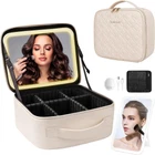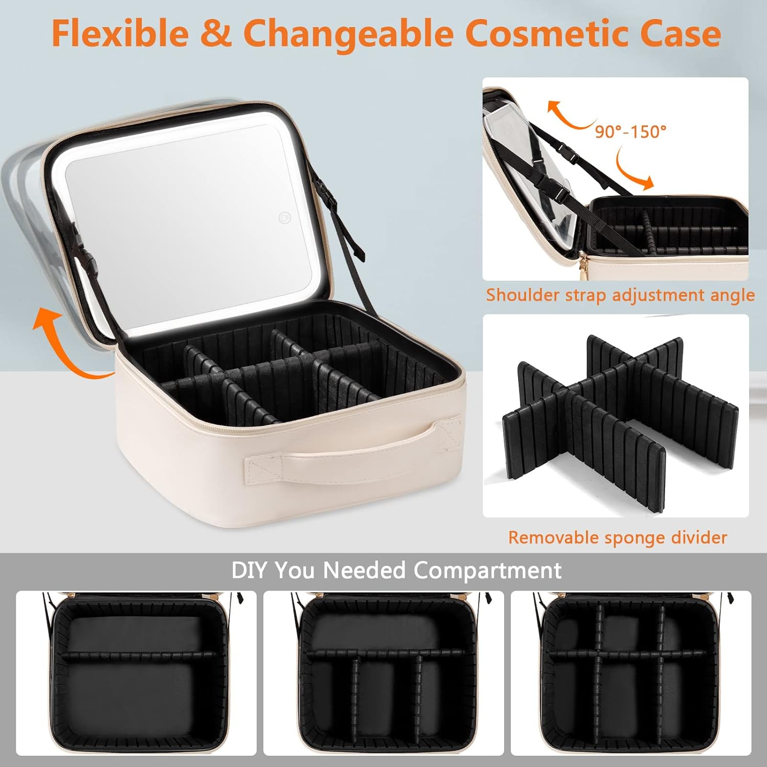 Lighted Travel Makeup Bag with Adjustable Dividers and Mirror