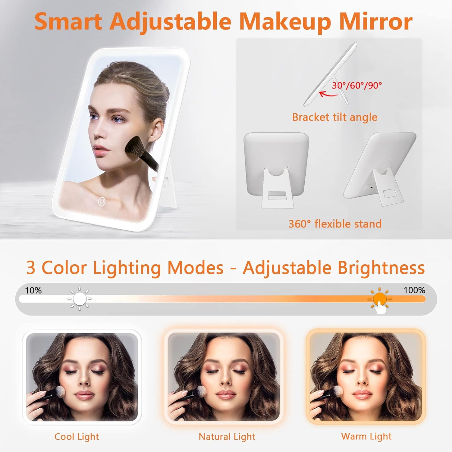 【Perfect Travel Makeup Case】PEEH travel makeup train case designed with storage compartment and makeup brush storage board, equipped with lighted makeup mirror and 10x magnifying mirror, can take it as dresser. Makeup case features a handle, you can bring your cosmetics anywhere, perfect for makeup or travel lovers. Size: 10.63*9.45*4.33inch. 【Smart HD 1X Makeup Mirror】Our travel led mirror with light features a smart light mode and highly sensitive touch control, detachable and chargeable, also with a detachable 10x magnifier mirror. Simply tap to select White Light, Natural Light, or Warm Light, long press to adjust the brightness. And has a 360° rotatable bracket 【Exquisite Workmanship】PEEH makeup bag with light up mirror are made of lychee grain leather, delicate in touch, waterproof and anti-dirty. The zippers are polished, electroplated and waxed. Each makeup organizer case has been embroidered on the leather surface, and the frame of the compartment is embossed, shockproof and anti-wear. The whole cosmetic case is exquisite and durable 【Multifunctional Cosmetic Storage Box】 Our lighted makeup case includes 6 EVA partitions and a brush storage board, have enough space to storage your cosmetic, like lipstick, brushes and so on. Storage compartment inside have anti-drop sponge pad, which can well protect your cosmetics, whether it is placed in the luggage or directly on the car 【100% Satisfaction Guarantee】It can be an ideal gift for mom, girlfriend, wife, etc. on Valentine's Day, Mother's Day, Christmas, and other special festivals. We have a strict quality control system, please feel free to contact us if there is any issue when you receive or use the makeup bag or mirror, and we will get back to you within 24 hours. Product Description
