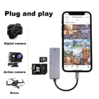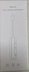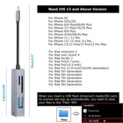 Lightning to USB Came Adapter Plug and Play This lightning usb adapter is design for iPhone/iPad, It does not require downloading any APP. It allows you to read and write the files you need. Fast transmission speed, you can transfer the data include pictures, videos, audios, and files from your USB storage or cards within seconds. 4 IN 1 iPhone Adapter ① SD card slot ② TF care slot ● Download the Photo/Video from SD Card/TF card or other USB devices to your phone directly and vice versa. ● Notice: Cannot read two cards at the same time. ③ USB A female for connecting : ● Camera ● Card Reader ● USB Flash Drive ● Mouse ● Keyboard ● Hubs ● MIDI ● and other USB A peripherals. ④ Lightning Charging port: You don’t have to worry about low battery while using other functions, The 4in1 ipad OTG USB adapter allows you to charge your iPhone or iPad when using other functions. This iPad USB female adapter does NOT SUPPORT the following devices: Harddisk, DJI Mavic Pro, Webcam, DxO camera;Printer, dvd disk drive,monitor, Microscope; USB scanners, Duet Display, PS4 controller,ant+ sensorc;ac id card reader,id usb scanner,USB outlet. Because this USB OTG adapter for iphone is not suitable for devices that need to download drivers and devices with a working current greater than 200 mA. And Please charge your iphone or ipad at the sametime when you use a USB-A devices or card slot. Compatibility iOS Models: iPhone13mini/13/13Pro/13ProMax iPhone 12/ 12 Mini /12 Por.. iPhone 11 / 11 Por iPhone X/XS/XR/Xs Max iPhone 8/8 Plus iPhone 7/7 Plus/7S/7S Plus iPhone 6/6 Plus/6S/6S Plus iPhone 5/5C/5S iPhone SE... iPad Mini/Mini 2/3/4 iPad Air/Air 2 iPad Pro(9.7-inch)/ iPad Pro(10.5-inch) iPad Pro 12.9-inch(1th/2th Generation) iPad 5th/6th/7th/8th Generation 【iPhone/iPad 4in1 Adapter Kit】:● TF Card Reader ● SD Card Reader ● iPhone to USB Female Connector ● lightning Charging port. This lightning to camera adapter is compatible with iPhone iPad, Plug and Play, No App needed. 【TF and SD card slot】:You can read your TF card or SD card at any time via the iPhone card reader, and copy photos or videos to your iPhone / iPad. This is a great choice to copy photos or videos from the camera in a short time! 【Expanded more functions for iPhone/iPad】:You can easily connect your digital camera, U disk, keyboard, mouse, game console, digital audio headset, MIDI interface, electric piano, drums, audio interface, mixer and other devices with USB A standard interface. 【Charge iPhone/iPad in time】:When using other USB peripherals or SD/TF card readers, use the lightning cable to connect the iPhone adapter to charge the iPhone/iPad. Don’t worry about your device running out of power while in use. 【Compatibility with Most of Device】:Requires iOS 13 and above system, The iOS OTG adapter compatible with iPhone 13/ 12/ 11/ 11Pro/ 11Pro Max/ Xs/ Xs Max/ X/ 8/ 8 Plus/ 7/ 7Plus/ 6/ 6 Plus/ 5/ 5S/ SE and iPad Air /Mini /Pro etc.