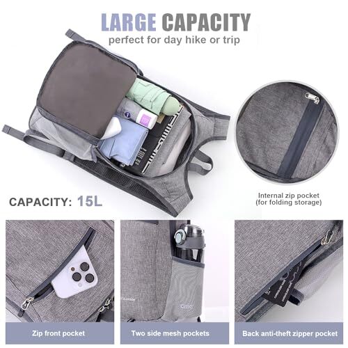 Return Policy Fast Delivery Trusted seller 15L Hiking Backpack Small Travel Backpack Lightweight Packable Backpacks Casual Daypack for Women and Men, Light Grey Product Description 【Lightweight Small Backpack】This foldable super lightweight travel backpack only weighs 0.5lbs but has a capacity of 10L, allows you to pack some smaller essentials with you. Very light weight yet well-made. Suitable for light duty-on used. 【Packable Backpack】Packs up super mini. The folded size is only 7 inch x 6 inch. You can pack the entire backpack into a small clutch. A nice small backpack that can be used for daily excursions and easily fits in luggage. 【Well Constructed】 Everything was easily accessible. The hidden back pocket is a pretty secure place to store the wallet. The zipper pocket at the front allows you to easily retrieve items. Reflective strip design increases night security. 2 side pockets can hold water bottles with a diameter of 2.4 inch. 【Well Made & Durable】10L foldable compact backpack for travel is made from highly rip fabric to provide strengthen and long-lasting performance with minimal weight. Simple backpack for daily use or trips. If you’re looking for a light little hiking pack this is the one! 【Widely Used】The ultralight hiking daypack is good for a comfortable overseas plane trip, day city excursion, day hiking, weekend getaway and daily use. You can carry 1L water bottle, some snacks, and a hat, etc. Holds a lot without being too oversized and bulky. It is perfect for short hikes, work-home commutes and go to the park on weekends. Shipping Returns Payment Shipping Shipping is FREE to all addresses other than APO/PO boxes in the lower 48 states. All our stock ships from US-based warehouses. Shipped via USPS or UPS (depending on location and package weight) Unless stated otherwise, all orders will ship within 24-72 hours of your payment being processed. Check our feedback to see the great reviews of FAST shipping we offer. Returns Seller does not accept returns Payment We currently accept payment via eBay managed payments only. Once payment is cleared, we will dispatch your shipment within 1-3 business days. Please refer to the "Shipping" tab for more information regarding shipping speed to your destination.