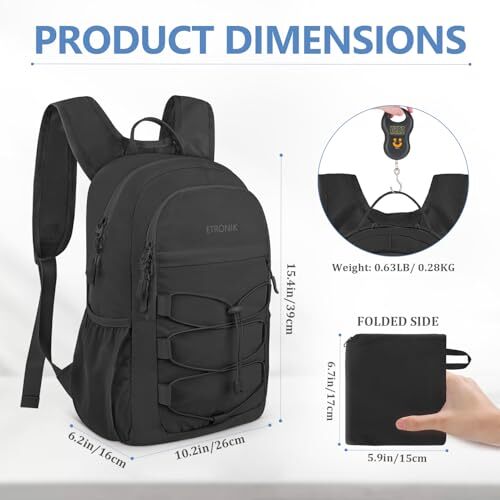 Return Policy Fast Delivery Trusted seller Hiking Backpack for Women Men, 15L Packable Small Backpack for Travel Trip, Lightweight Foldable Mini Backpack & Water Resistant Daypack for Hiking, Walking, Camping, Cycling, Black Product Description COMPACT & MULTIFUNCTIONAL: This hiking backpack is small in size but has multiple pockets for easy carrying. A spacious main compartment and an internal zipped compartment can hold your travel essentials and keep belongings organised. Two front zip pockets for quick access to your belongings, holding wallet, passport, keys and so on. Two side pockets hold water bottles. The elasticated front drawstring can expand the pack's capacity for items like gloves, hats and towels LIGHTWEIGHT & STURDY MATERIAL: The small backpack is made of high-density nylon. The material is strong, waterproof and durable, more tear resistant than other materials. Meanwhile, the fabric is lightweight, smooth and dry, making the backpack weigh only 0.63 lbs and easy to fold and carry. The zippers are made of a bi-directional resin material, and the opening and closing are smooth as silk. If you are looking for a lightweight small backpack for hiking, this is the one for you ERGONOMIC DESIGN: Our mini backpack is designed with ergonomics in mind. Its small size, compactness, and adjustable shoulder straps make it fit snugly against your back, providing a stable center of gravity during hiking. This waterproof backpack is perfect for daily outings and commuting, suitable for men and women, old and young PACKABLE DESIGN: The Unfolded size of this foldable daypack is 10.2 in × 6.2 in × 15.4 in. It is compact and portable, and can be folded into the built-in organiser pocket to form a small handbag with a size of 5.9 in × 6.7 in. When you don't need to use it, you can fold this backpack to save space and easily put it into a suitcase or backpack MULTI-OCCASION & VERSATILE USAGE: This small travel backpack provides enough storage space for your travel and outdoor activities, and you can take it on any flight. It is a perfect companion for day hiking, day traveling, cycling, camping and daily use. It is an ideal choice for climbing, exploring, relaxing and commuting. This small hiking backpack can also be used as a gift for friends and family on birthdays and holidays Shipping Returns Payment Shipping Shipping is FREE to all addresses other than APO/PO boxes in the lower 48 states. All our stock ships from US-based warehouses. Shipped via USPS or UPS (depending on location and package weight) Unless stated otherwise, all orders will ship within 24-72 hours of your payment being processed. Check our feedback to see the great reviews of FAST shipping we offer. Returns Seller does not accept returns Payment We currently accept payment via eBay managed payments only. Once payment is cleared, we will dispatch your shipment within 1-3 business days. Please refer to the "Shipping" tab for more information regarding shipping speed to your destination.