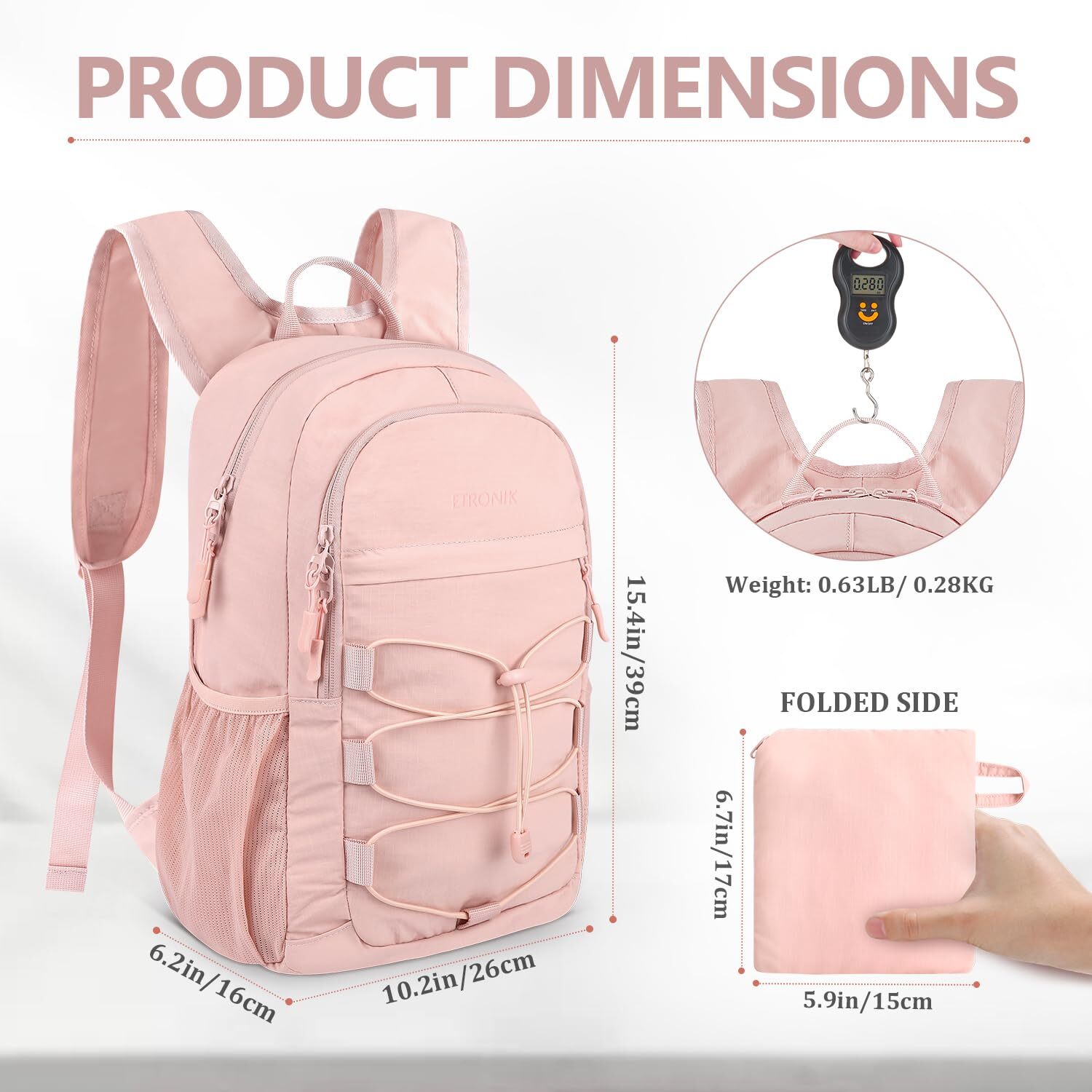 This lightweight backpack is a game-changer for travel and outdoor adventures! The compact size is surprisingly roomy, with smart pockets that keep everything organized. Love the water-resistant material—perfect for unexpected rain. Super comfortable to wear all day, and the foldable design makes it easy to stash when not in use. The pink color is vibrant and stylish. Ideal for hiking, city trips, or daily errands. Highly recommend!