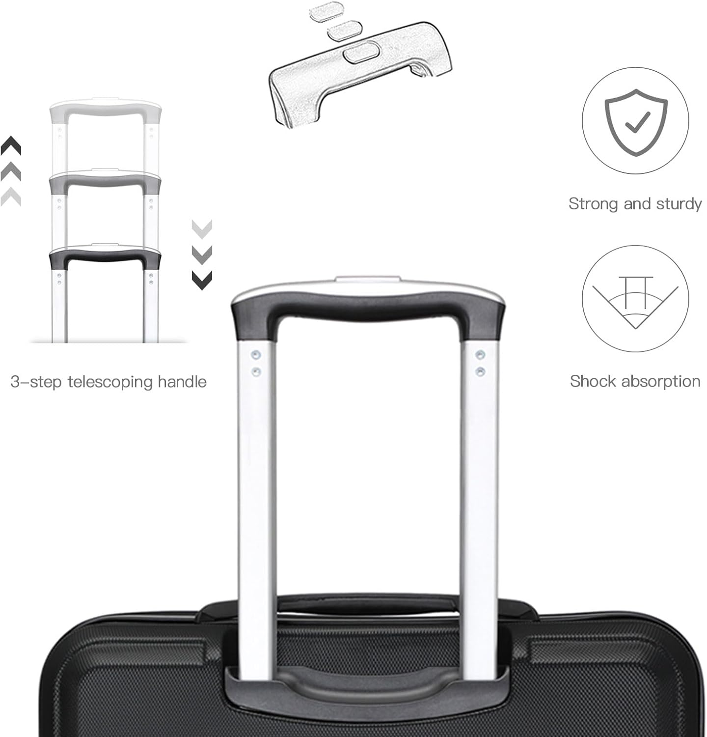 【12/20 INCH LUGGAGE SET DIMENSIONS】12" Overall: 9" x 11" x 5.9", Weight: 1.4 lbs. 20" Overall: 20.3" x 15" x 8.3", Weight: 5.5 lbs. CAPACITY: 35.7L. Kono lightweight 20" suitcase meets most American International Airlines' carry-on luggage size requirements. The back of the 12" mini cosmetic travel case is designed with a fixed belt structure that allows it to be linked to the trolley case. The best choice for carry-on luggage and suitable for 3-5 days trips! 【DURABLE + 2 YEAR LIMITED WARRANTY】Made from protective, lightweight hardside ABS shell, scratch and pressure-resistant, dirt-proof and waterproof. Kono durable luggages go through insanely strict quality control test standards, to ensure our products can withstand the rigour of modern transport. Also Kono offers trustful warranty service! 【TELESCOPIC HANDLE+SHORT HANDLE】Adjustable 3-level aluminum telescoping handle allows you to quickly maneuver in tight spaces and it's sturdier than most of the telescoping handle on the market. The top/side soft reinforced grip handles for easy carrying when in a hurry, or it can be really handy when lifting the suitcase with heavy weight. 【CARRY ON LUGGAGE WITH LOCK + WHEELS】Side-mounted TSA LOCK with smooth YKK zipper act to deter theft, ensuring that only you or a TSA agent have easy access to your belongings when traveling, added security and convenience. Multi-directional spinner wheels to provide 360° effortless mobility and ease on traveler's wrist, re-engineered lightweight. 【PRATICAL INTERIOR FOR WELL ORGANISED】Kono hard shell carry on luggage designed with 2 roomy fully lined compartments. The packing straps hold your clothes in place, a zipper mesh pocket for anything you want to keep separate. Large-capacity cosmetic case designed a zipper mesh pocket on one side to help items in a good order and easily accessible. Travel cosmetic bag for storing toiletries, cosmetics, small items, and various personal items. Not only a perfect carry on luggage suitcase for yourself, also a cute gift for your families, friends, or school children. Product Description Kono Hardside luggage with spinner wheels Go where you haven't Best Luggage Suitcase for Gift Choice! The video showcases the product in use. The video guides you through product setup. The video compares multiple products. The video shows the product being unpacked. INTERNATIONAL TSA-APPROVED LOCK Slide Mounted TSA combination zipper lock to keep your belongings safe and secure to your destination. With a built in combination lock, the Kono cases are good to go no matter where you are. No keys required! Giving passengers peace of mind. HAPPY TRAVEL with Kono LUGGAGE When you have to transfer between different modes of transportation or navigate crowded areas, you can easily lift or carry our luggage. Discover more the journey with our lightweight luggage. 360° DOUBLE SPINNER WHEELS Durable & Silent, Moving Easily, Smooth Rolling Wheels. Sturdy telescopic handle Push-botton locking system , aluminum handle locks firmly into place when extended. Shacking is strictly controlled within 1 CM. Reinforced grip handles Provide convenient handling for different situation , meanwhile save your energy. Sturdy, elastic and not easy to break. Side bumper feet strategically placed to elevate the luggage slightly above the ground, preventing wear and tear over time . Practiacl and protective nice design . Durable YKK zipper Allow travelers to effortlessly open and close the luggage Smoothly . Reinforced and upgraded zipper closure system . GO WHERE YOU HAVEN'T Kono luggages go through insanely strict quality control test standards, to ensure our products can withstand the rigour of modern transport. Also Kono offers trustful service! SPACIOUS INTERIOR Whether it's a short weekend getaway or a long-haul adventure, Kono luggage provides the room you need to pack with ease and organization. EXPANDABLE DESIGN for 28 INCH SUITCASE With an extra 15% packing space—say goodbye to cramped travel and hello to comfort.