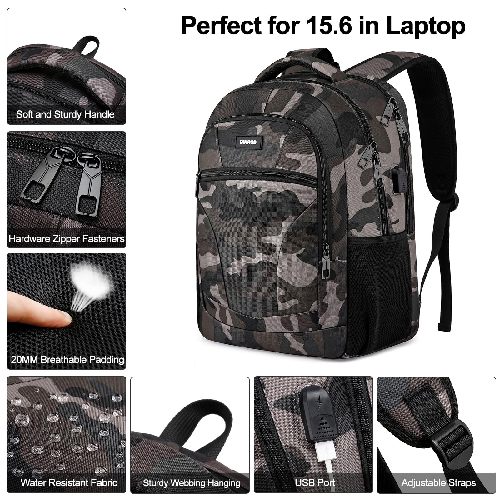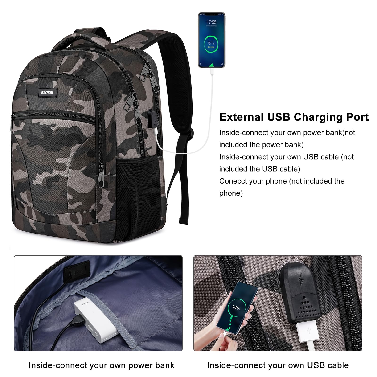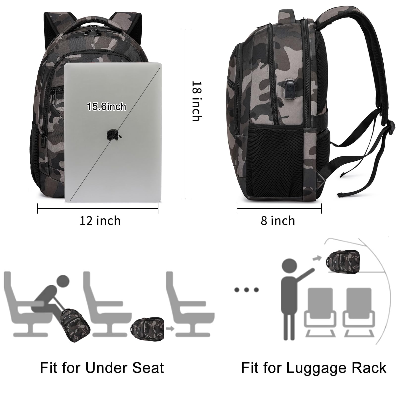 STORAGE SPACE & POCKETS: The main pocket of school backpack is equipped with a separate laptop soft compartment hold 15.6-inch laptops and 15-inch, 14-inch and 13-inch Macbooks/notebooks. The soft sponge design will protect your laptop. Outside the compartment, a more spacious packing compartment roomy hold an iPad, mouse, charger, binder, books, clothes, etc. Mesh pockets are located on the sides of water bottles and compact umbrellas to keep your belongings organized and easier to find STURDY MATERIAL & SOLID: Made of Waterproof and Sturdy Polyester Fabric with metal zippers. Ensure a secure & long-lasting usage everyday & weekend. Serve you well as professional office work backpack, slim USB charging backpack, perfect as Laptop Backpack, Travel Backpack, College Backpack, mochilas para hombres. Premium gift for the family, friends, co-workers, Birthday, Christmas for College, Bachelor, Graduate, Men, Adult Traveling COMFY & STURDY: Comfortable airflow back design with thick but soft multi-panel ventilated padding, gives you maximum back support. Breathable and adjustable shoulder straps relieve the stress of shoulder. Foam padded top handle for a long time carry on USB PORT DESIGN & ANTI THEFT: External USB CHARGING PORT with built-in charging cable ,provides a convenient charging of your electronic device anywhere, ANTI THEFT back hidden zipper pocket will keep your valuable belongings such us credit cards or purse safe, Age: suitable over 3 years old.