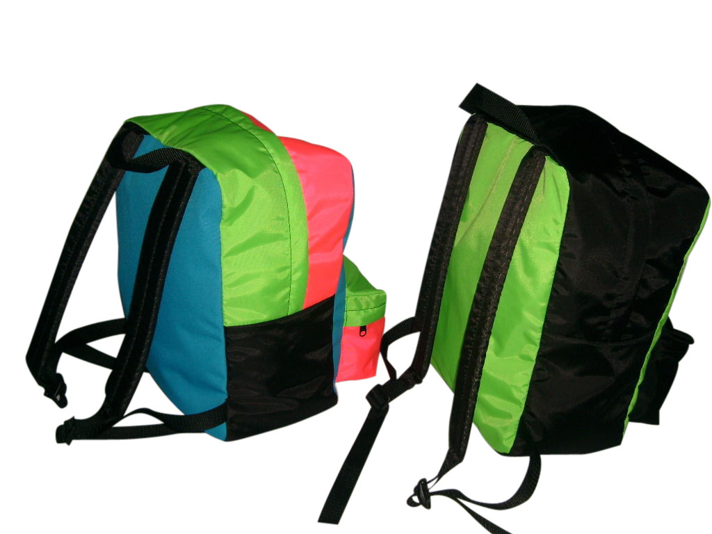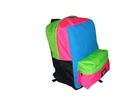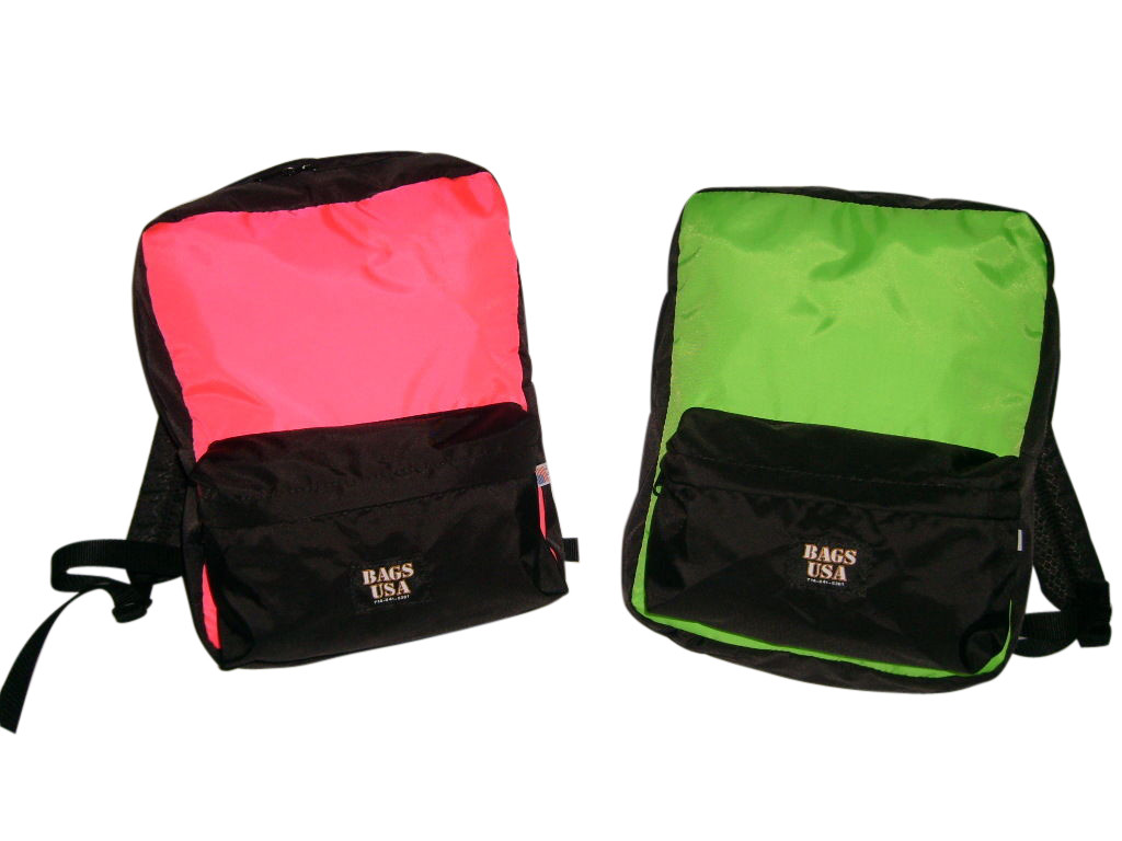 Item # 238 Large Student Backpack with front pocket padded shoulder straps Double zipper, water resistant. Holds lots of heavy books. Size: 16" height x 12" width x 7 " depth Fabric 420 D nylon all reinforced. Perfect backpack for all your heavy books. Cost is For 1 backpack please mention which color you like to receive. #1 Neon Pink & Turquoise /green - #2 Neon Yellow &Turquoise/black - #3 Neon green/black - # 4 Neon Pink/black - #5 Neon pink & Purple /white Cost is for 1 Backpack, please message us and mention which number you like to receive. Made In USA.