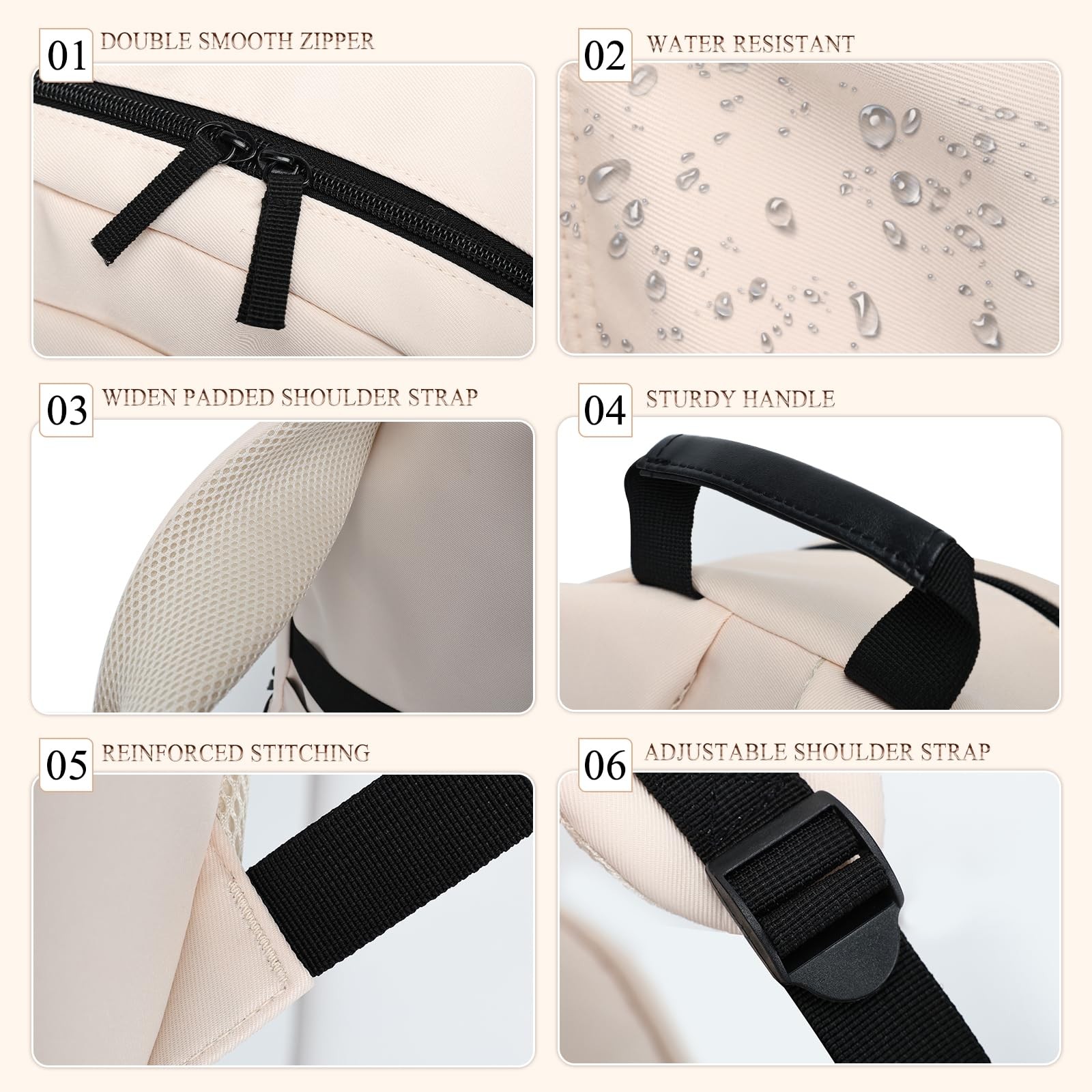Large Multiple Compartments for All Your Needs: Main Compartment: Spacious enough to fit laptops up to 17.3inches and clothing for short trips (1-2 days). Front Compartment: Ideal for storing phones, pens, keys, wallets, passports, and other small essentials. Side Pockets: Perfectly sized for water bottles, compact umbrellas, and similar items. Secure Anti-Theft Pocket: Located at the back for safely storing valuables like passports, phones, wallets, and keys. Specifications: Dimensions: 18 X 13 X 8 inches, offering a 35L capacity to accommodate your daily or travel needs. Lightweight Design: Weighing in at just 1.5lbs, this backpack for women is suitable for everyone and caters to various styles, including school laptop, business, travel, and casual use. age:over 3 years old Multi-compartments & Large Capacity: The laptop backpack for girls has 5 separate different compartments and two side pockets. The front two pockets can hold charge device and other small items. The main compartment of includes laptop padded sleeve with elastic belt. The front tool compartment also come with multiple pockets to provide roomy space for necessities. Care Girls' Spinal Health: This girls school backpack features "ergonomical design", thickened and wider shoulder straps and innovative breathable mesh back panel for superior comfort and back support, reduce their burden, release the stress on shoulders. Multi-Functional Girl Backpack: The teen backpacks for girls with a zippered pocket on the back for your valuable or private items. With a luggage strap so can be hung on a trolley case to free your hands Exquisite Details and Material: Bulit in water-resistant, tear-resistant, thickened fabric; strong zippers; reinforced stitching; Waterproof fabric to protect your items from getting wet; non-slip and adjustable buckle of the shoulder strap; Suprprise for Your Girls: Solid color simple design, featuring vibrant and youthful, it will be a surprise if you give this school backpack for girls to your daughter, granddaughter or friend; Suitable for school, short travel, casual life, outdoor activities