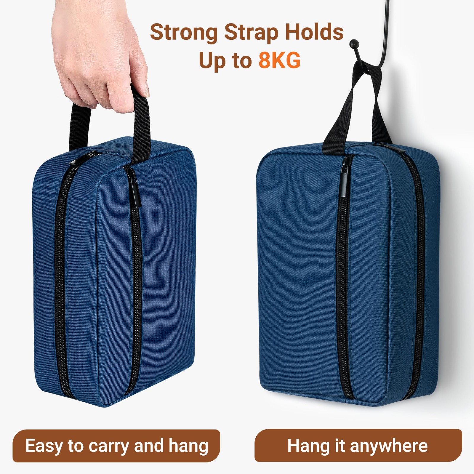 Elviros Hanging Travel Organizer for Men & Women – TSA Approved Toiletry Bag with Separate Compartments Engineered for global explorers, this premium TSA approved dopp kit for carry on combines airline-friendly 8.27x5.9x2.76-inch portability with military-grade organization. The instant-hook design keeps toiletries clean and accessible in cramped bathrooms. Military-Grade Organization Separate compartments store liquids, dry goods, and delicate items securely Front quick-access pocket for dental kits/travel-sized cosmetics Expandable main cavity fits 8+ full-size essentials Built for Real-World Travel Hanging travel organizer design saves counter space in hotels/RVs 300D puncture-resistant fabric passes TSA inspections Reinforced stitching holds 17.6 lbs of toiletries One Kit, Every Adventure Sophisticated charcoal/graphite tones suit all genders Compact profile slides into carry-ons/duffle bags Wipe-clean interior resists spills and odors Travel Toiletry Bag Size & Usage:The toiletry bag measures 8.3"L x 2.8"W x 5.9"H (21 x 7 x 15 cm). Its compact size fits seamlessly into backpacks or TSA-approved luggage, making it ideal for short trips or business travel. Spacious enough to hold men’s shaving kits, women’s cosmetics, and all travel essentials Toiletry Bag Material & Workmanship:Crafted from 300D cationic Oxford fabric for durability and odor resistance. Features lightweight, reinforced stitching on handles (supports up to 8 kg/17.6 lbs) and a smooth zipper for easy access Multi-functional Lightweight Small Bag : This travel bag for toiletries consists of a main pocket and a side pocket. It is simple but suitable for storing bathroom supplies and skincare products in daily life or during travel. The smooth zipper makes it easier to access items Vacuum-Sealed Packaging:Minimalist packaging helps reduce shipping volume. Note: Fabric may temporarily compress during transit - gently reshape by hand or with low-heat ironing. Great Idea for a Present:A stylish, long-lasting gift for husbands, friends, or travelers. Premium colors retain their appeal even after years of use