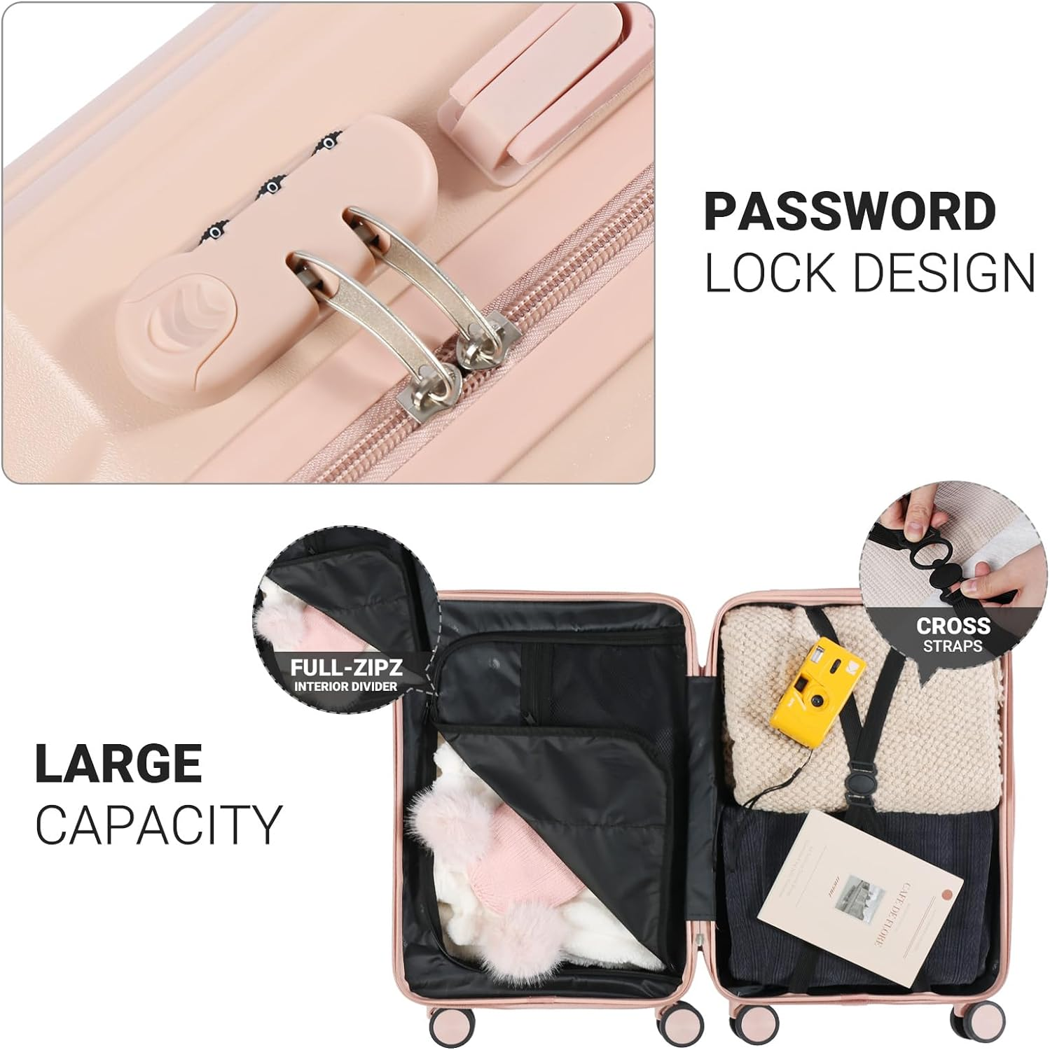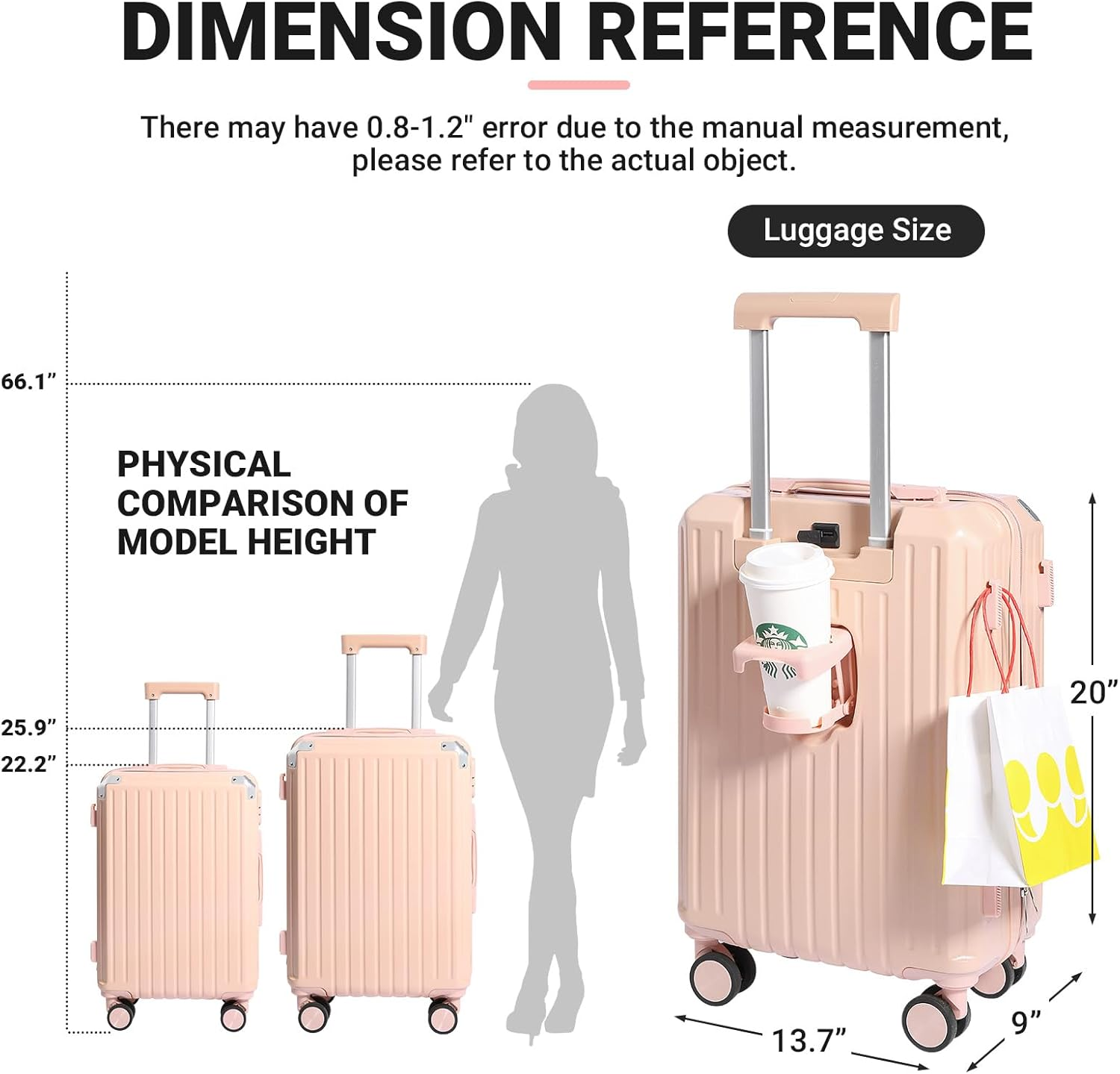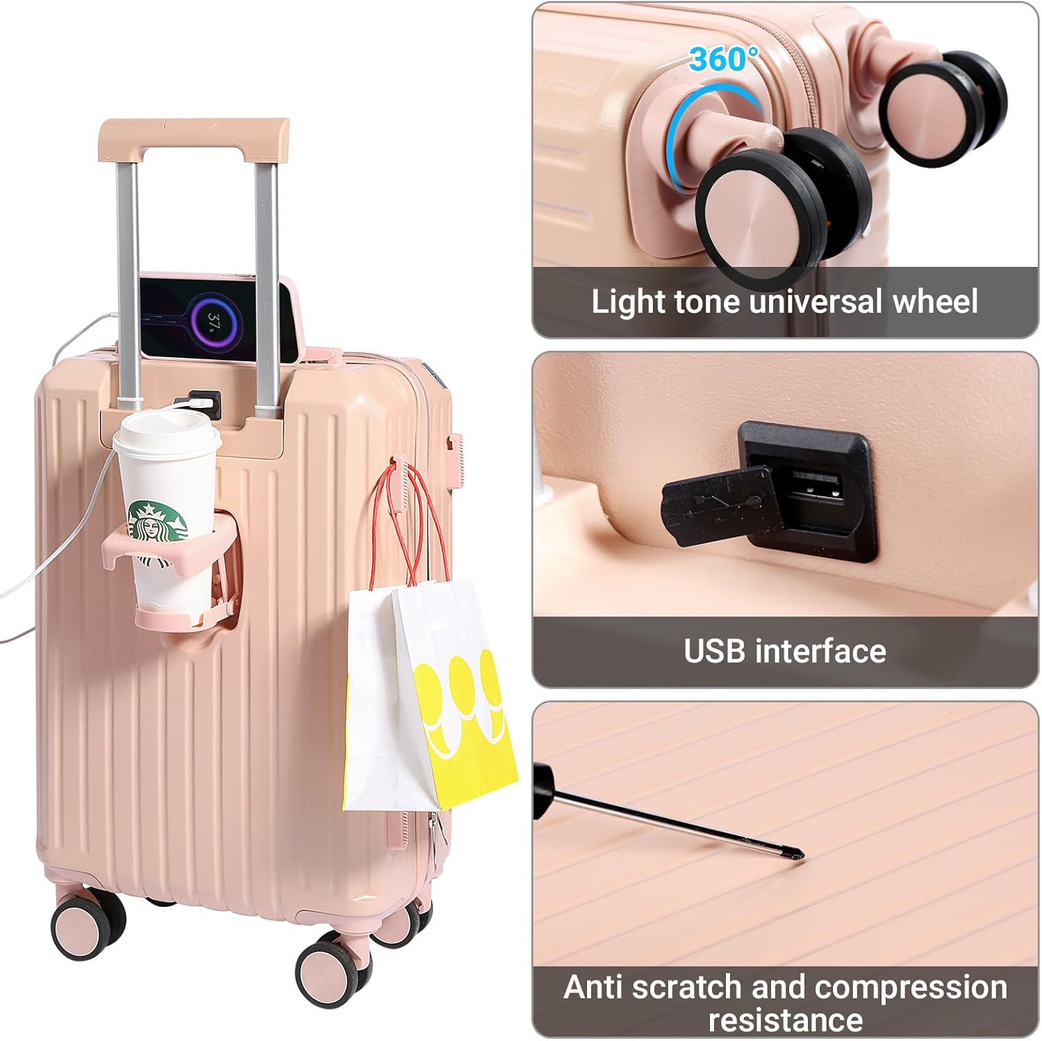 Store New Arrivals Add to Favorite View Feedback Contact Carry-On Luggage with Cup Holder & USB Charging Port, Hard Side Luggage with Spinner Wheels, Lightweight Luggage for Travel, Business (Pink, Carry-On 20-Inch) Description Item model number luggage-4 Capacity 2466 Cubic Inches Color Pink Product Dimensions 13.7 x 9 x 20 inches Country of Origin China Item Weight 3.31 Kilograms Department Unisex Capacity Total 2466 Cubic Inches Size Carry-On 20-Inch DURABLE: This suitcase is made of ABS+PC material, ABS material is hard and easy to brittle, after adding PC material flexibility will be very high, touching although soft, but lifting is very light, the average adult standing on it are no problem. SECURITY: The luggage is equipped with a reliable 3-digit combination locking system to ensure the safety of your belongings while travelling, making your journey hassle-free. LARGE CAPACITY: Changing the way the interior is organised, using scientific zoning at a glance, allowing you to easily and conveniently pack your belongings and make travel storage in order. QUIET SPINNING WHEELS: The suitcase features 360° multi-directional spinning wheels that glide quietly and smoothly, providing effortless manoeuvrability and reducing travel noise to ensure an enjoyable travel experience. ADJUSTABLE: The telescopic handle can be adjusted to different heights to suit people of different heights, ensuring a comfortable and seamless pulling experience, as well as a stable and smooth stowage, making it a versatile and user-friendly travelling companion. Product Description Multi-Functional Suitcases For A Beautiful Journey And A New Life Of Relaxation And Comfort PRODUCT DETAILS Soft Plastic Handle Comfortable to hold for a long time Standing Legs Are Also Hooks Small items hang easily to free your hands Anti-Crash Metal Corners Protect the box from cuts and scrapes Security Combination Lock 3-Digit Combination Lock is easy to operate and makes traveling more secure External USB Socket For Smarter Walking Say goodbye to the hassle of holding a mobile power supply while walking. (Mobile power need to be placed inside to be charged on the go) ABOUT US We offer the best prices around on high quality products. Our E-store includes media such as books, movies, music and games while offering electronics, toys, sporting apparel, clothing, tools, general home, garden items and more. SHIPPING We are always working hard to ensure your package arrives as soon as possible. Please understand that some factors like weather, high postal traffic, and the performance of shipping companies are outside of our control. We offer free shipping to the lower 48 states and ship within 2 business days of payment, usually sooner. We do not accept P.O. Boxes. Please provide a physical address. For shipping outside of the continental USA, we only use eBay's Global Shipping Program.The item is shipped to KY and then sent to the rest of the world. International customers are responsible for all duties and taxes. Continue to check out in order to calculate costs for shipping the item to your country. Messages regarding eBay's Global Shipping Program MUST be directed at eBay EXCLUSIVELY. RETURNS We offer a 30-Day Return Policy on items which you are not completely satisfied with. You have the option for a full-refund or an exchange of the item. No returns are available on items shipped outside of the USA. PAYMENT We accept PayPal. CONTACT US This page content is yet to come Please ad us to your favorite seller and visit again later Thank You CUSTOMER SATISFACTION We try our very best to make sure every customer is completely satisfied. If there's a problem, message us! We're happy to help.