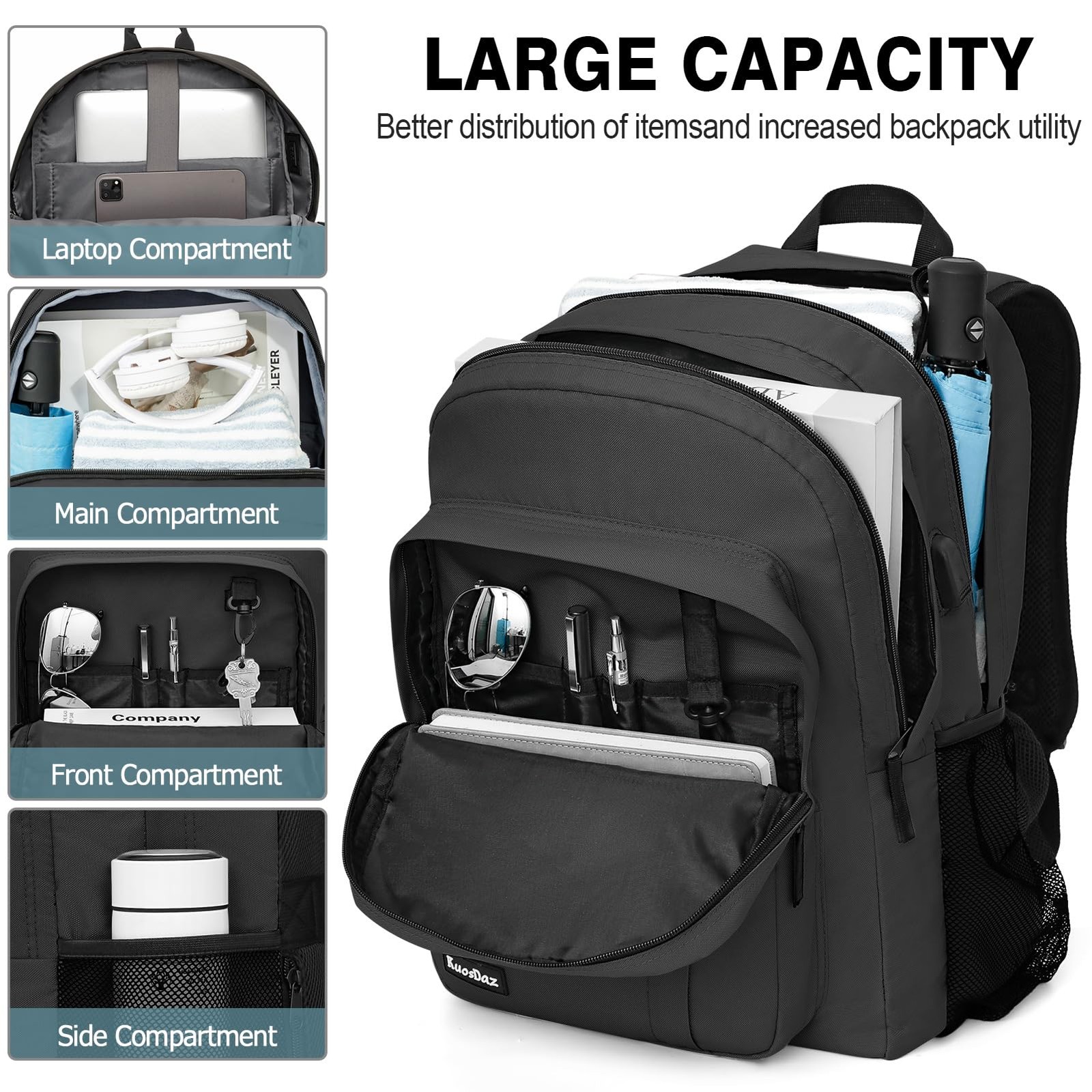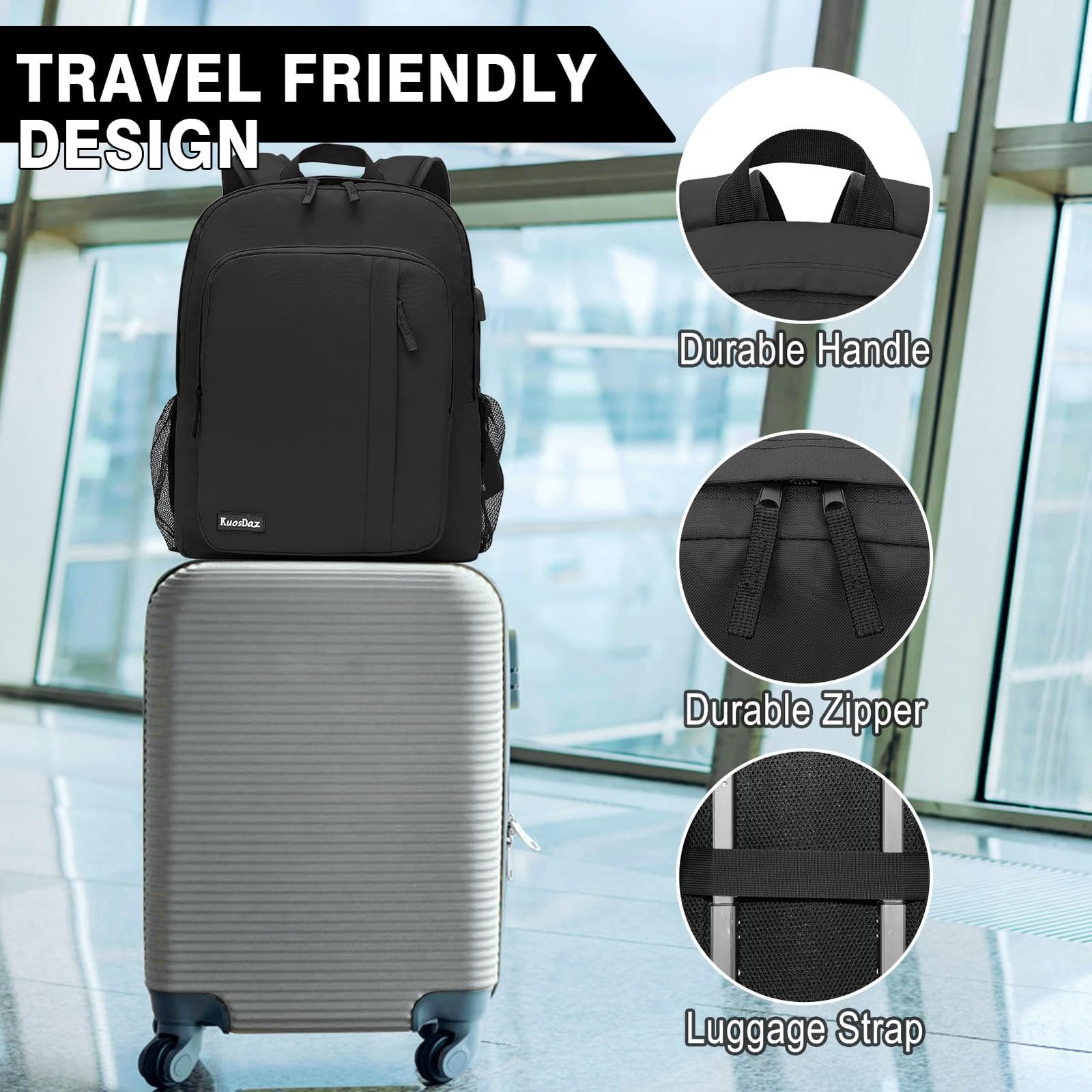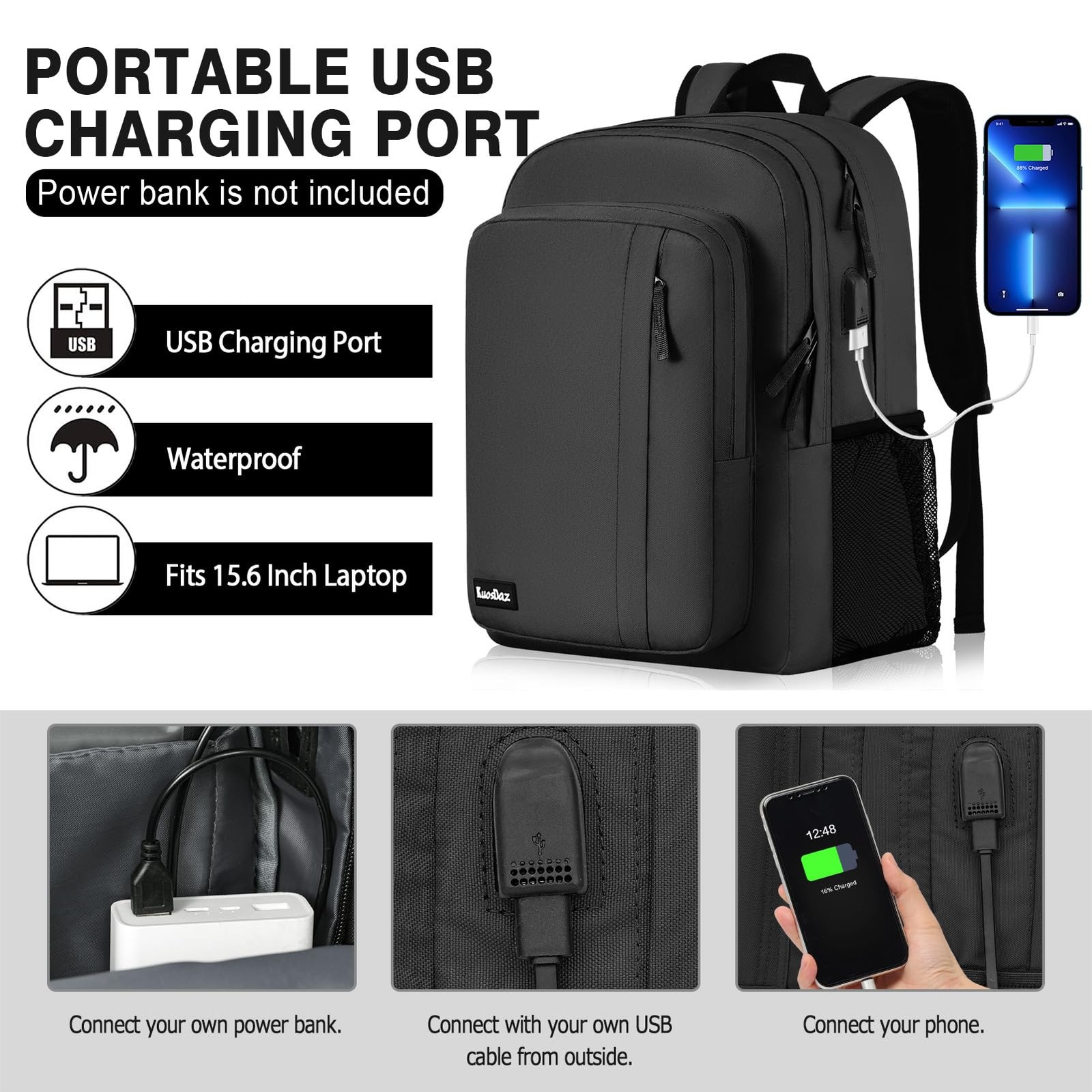 Dark Grey School Laptop Backpack Specifications: DIMENSION: 17.7”H x 11.8”L x 11.4”W Weight: 1.5 lb Shoulder Strap Length: Up to 45". Material: Lightweight Material+ Knot Zipper This 16 inch college backpack could be used for travel accessories and laptop accessories, business trip, work. Backpack for men women built from knot zippers, comfortable top handle, Simple lightweight exterior material with a fully lined tear-resistant custom printed polyester interior. USB Charging Port Design: With an external USB charging port; set-in charging cable, this USB laptop bag offers you a more convenient way to charge your phone while on the go. (Power bank NOT included). Multi-function Backpack: Backpack for men have retractable pockets on both sides, which are specially designed for small items. You can put small items such as water cups, umbrellas, etc., simple and convenient The trolley strap design can be hung, and the trolley case can be easily hung when traveling, highlighting the practical design of the backpack. Hidden zipper pocket on the back for easy carrying Travel laptop backpack is a perfect companion for travel, business, daily use and outdoor activities. Practical gifts for friends, mothers, fathers, her or him. Large Capacity Lightweigh Backpack: Size: 17.7*11.8*11.4 inch, 30L. This dark grey laptop backpack for men women has a simple appearance and lightweight material. There is an independent laptop protection compartment, which can fit a 16 Inch laptop. The front of the computer backpack also includes 4 pockets of different sizes, which can store passports, power banks, pencil cases, clothes and other items needed for daily school, office and travel. Portable USB Charging Port: There is a USB charging port extension on the side of the work backpack, with a built-in charging cable inside, which is convenient to charge your phone (POWER BANK is not included). work bag is a very beautiful and very functional bag. Ergonomic & Water Resistant Fabric: Comfortable airflow back design, made of highly elastic breathable sponge and honeycomb shock-absorbing fabric, sturdy and soft, heat dissipation fast. Adjustable shoulder straps reduce weight and protect your back and shoulders. High-density polyester waterproof oxford cloth keeps your belongings from getting wet. Boys Travel Backpack: The mesh shoulder strap design on both sides of the back pack allows enough air circulation around your shoulders. A fashion daypack designed for all-day comfort. The hidden anti-theft pocket on the back can protect your smartphone, wallet, passport and other valuables from being lost, for all basic daily needs for university, school, work, travel, hiking, business trips. Lightweigh Back Pack for All Occasions: This is a sturdy computer backpack, ideal gift for grandson, son, teen boys, friends, lover, teachers, mens. A great choice for office work backpack, travel backpack for men, bookbag for men, school backpack for boys, college backpack, daily use basic backpack, nurse backpack, students backpack, teachers backpack, all indoor and outdoor activities. Age: over 3 years old