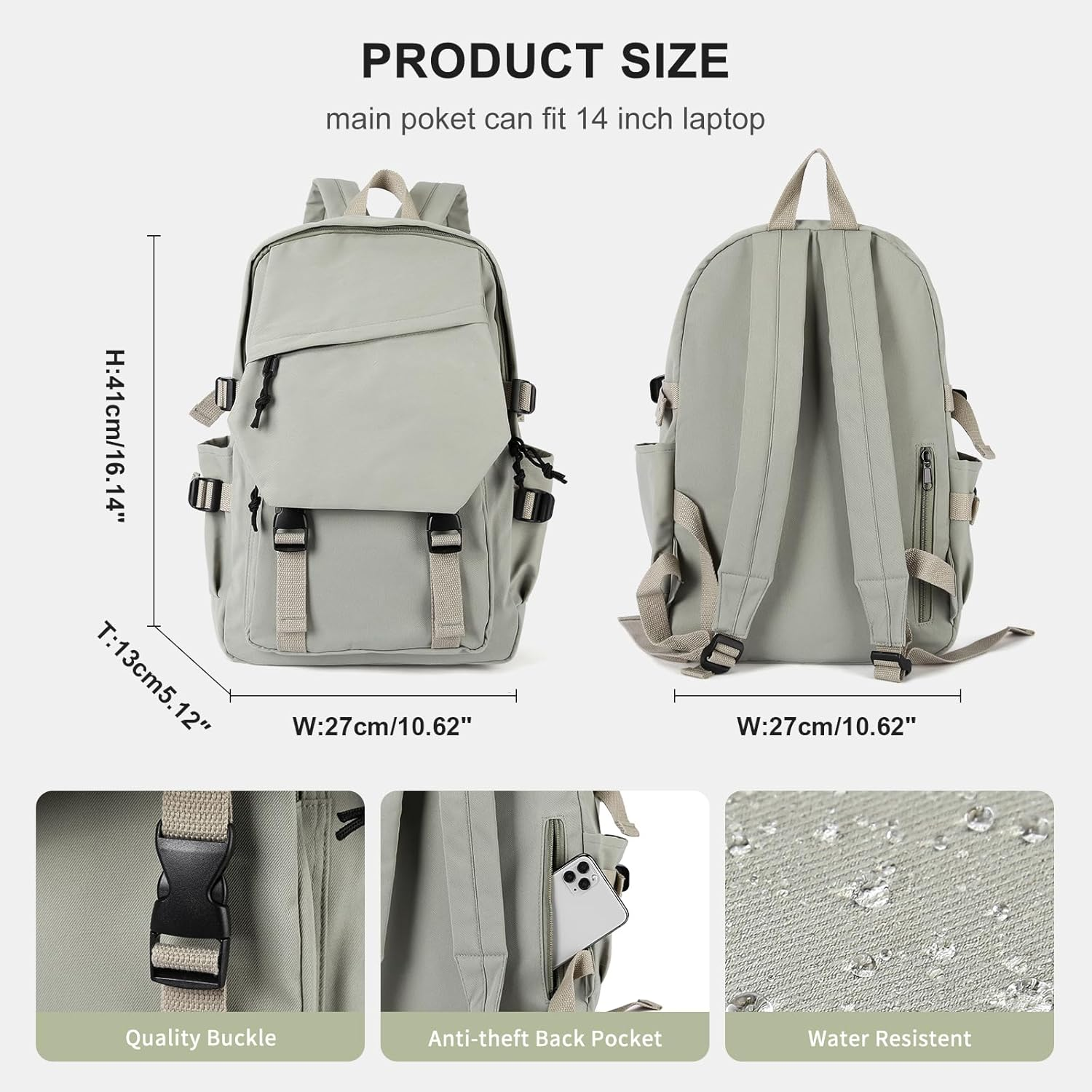 Store New Arrivals Add to Favorite View Feedback Contact Lightweight School Bag College Laptop Backpack for Men Women Travel Bag High School Middle Bookbag for Boy Girls Description Age Range Description Adult Capacity Total 20 Liters Number Of Items 1 Color B-gray Green Product Dimensions 9 x 14 x 3 inches Item Weight 1.21 pounds Department Unisex Child Units 1 Count 【Lightweight material】This bag is made of waterproof and durable polyester, good breathability, good heat dissipation, two padded shoulder straps, light to carry, forcibly reinforced, keep cool when carried for a long time. Model drawings are for reference only and do not include animal pendants. Model drawings are for reference only and do not include animal pendants. 【Updated structure】This college laptop backpack has a top-loading compartment for most gear books and laptops, and can also hold a 14-inch (about 35.6 cm) laptop backpack. The main zipped compartment has a file divider, and two front exterior access to a zipped pocket for pens and highlighters. There are two water bottle pockets on both sides for drinks. An anti-theft zippered pocket for valuables. 【Multifunction】Comfortable bag suitable for Women, Recommended for daily use /office / shopping / camping / hiking / travel / travel. 【Fashion Design】Classic and stylish design makes this backpack not just a simple bag, but a professional office backpack, street slim fashion bag, college bag on campus, adult travel personal carry-on bag. 【Space】External dimensions: (W*L*H) 41*27*13 CM/16.14*10.62*5.12 inches, Capacity: 20 liters; Weight: 0.6 kg / 1.2 lbs Product Description ABOUT US We offer the best prices around on high quality products. Our E-store includes media such as books, movies, music and games while offering electronics, toys, sporting apparel, clothing, tools, general home, garden items and more. SHIPPING We are always working hard to ensure your package arrives as soon as possible. Please understand that some factors like weather, high postal traffic, and the performance of shipping companies are outside of our control. We offer free shipping to the lower 48 states and ship within 2 business days of payment, usually sooner. We do not accept P.O. Boxes. Please provide a physical address. For shipping outside of the continental USA, we only use eBay's Global Shipping Program.The item is shipped to KY and then sent to the rest of the world. International customers are responsible for all duties and taxes. Continue to check out in order to calculate costs for shipping the item to your country. Messages regarding eBay's Global Shipping Program MUST be directed at eBay EXCLUSIVELY. RETURNS We offer a 30-Day Return Policy on items which you are not completely satisfied with. You have the option for a full-refund or an exchange of the item. No returns are available on items shipped outside of the USA. PAYMENT We accept PayPal. CONTACT US This page content is yet to come Please ad us to your favorite seller and visit again later Thank You CUSTOMER SATISFACTION We try our very best to make sure every customer is completely satisfied. If there's a problem, message us! We're happy to help. WE ACCEPT