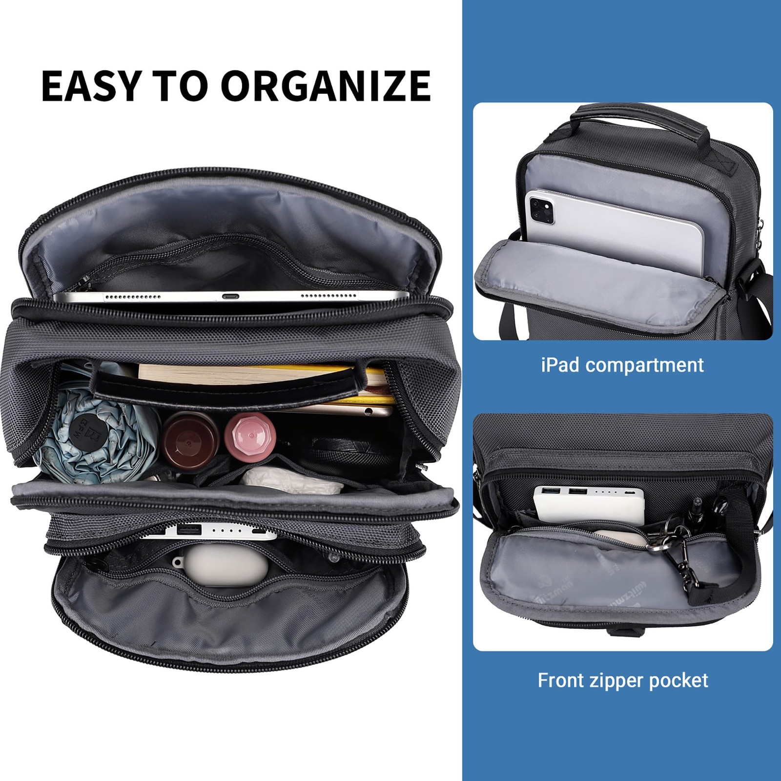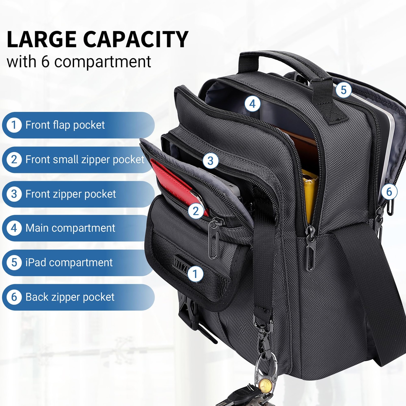 Descriptions: Crossbody Bags for Men Travel Shoulder Bag Lightweight Man Purse Small Casual Messenger Bag for Work Traveling Material: Nylon ; Polyester lining; Hight color hardware. Size: Approx.8"L x 11"H x 4.7" W(L: 20.32x H 27.94 xW 11.94 CM); Net weight:0.485kg (1.067 lbs). Multipurpose: travel bag,messenger Bag, crossbody bag. Condition: New high-quality men's shoulder bag,crossbody backpack, crossbody bag. Audience: messenger Bag for men,adults, man, male, gentleman etc. Nylon crossbody bag Inner structure: One main compartment that can accommodate daily essentials. Front are 2 zipper pockets and 1 flip pocket.Meanwhile,On the back of main compartment has 1 zipper pocket.And one anti-theft pocket on the back to protect items from theft. It has a anti-theft zipper pocket on the back,which can safely safeguard your valuable items such as your phone and wallet,without worrying about being opened in travel or crowded places. Package include: 1 nylon messenger Bag 1 adjustable long shoulder strap Remarks: Capacity: Can hold 11 ipad ,cell phone,wallets, keys,wristwatch, charger, clothes,shoes and other everyday daily items. 1.Please confirm the size according to our description. 2.Please allow little color difference due to different cameras or environments. This bag is only suitable for adults. Material and Dimension:This messenger Bag is made of high-quality nylon fabric and PU leather material.Polyester lining;Dimension:Approx 8"L x 11"H x 4.7" W(L:20.32x H27.94 xW11.94 CM); Weight:0.485kg(1.067 lbs).A 29 to 58 inch removable and adjustable shoulder strap; Multi pocket design: A main compartment that can accommodate daily essentials.Front are 2 zipper pockets and 1 flip pocket.Meanwhile,On the back of main compartment has 1 zipper pocket.There is an anti-theft pocket on the back to protect items from theft. Large Capacity:This nylon laptop messenger Bag is suitable for storing under 11 inch iPad,wallets, keys,document,wristwatch,headset,charger,and other everyday travel items. Hidden Anti-theft Pocket:This casual daypack has a anti-theft zipper pocket on the back,which can safely safeguard your valuable items such as your phone and wallet,without worrying about being opened in travel or crowded places. Multipurpose Travel Daypack:This sling bag is suitable for women men,suitable for outdoor sports (hiking,cycling,biking,walking,running,camping,climbing),office and business.