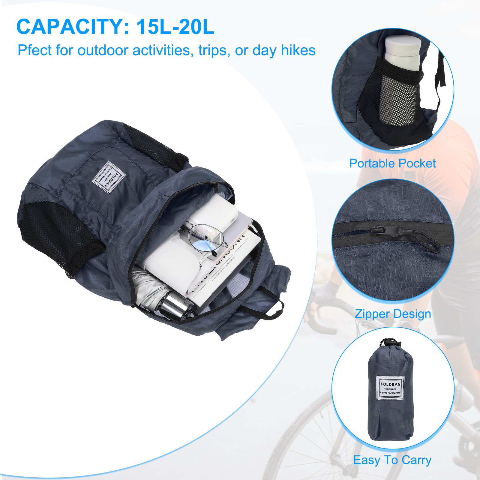 Document Versatile in function, this foldable backpack is a perfect accessory for various outdoor activities such as hiking, cycling, running, skating, climbing, camping, fishing traveling, fitness, an go to work, suitable for both men and women.SpecificationCapacity: 15-20LMaterial: PolyesterFolding Size: 17 x 8 x 4cm / 6.7 x 3 x 1.6 inch (L*W*H)Total Size: 42 x 26 x 14cm / 16.5 x 10 x 6 inch (L*W*H)Packing List: 1Pcs x Hiking BackpackAdvantageMade of durable polyester material, water-resistant, light in weight, portable, sturdy, wear-resistant, and not easy to break.The main compartment accommodates your travel necessities like clothing and an umbrella, and the front pocket is great for quick access and storage. Two side pockets help in keeping your belongings well-organized and easily access. Weighing just 0.18lb, this lightweight backpack is convenient to carry and use.InstructionFoldable Design: When not in use, you can fold it up, and store it into your handbag, backpack, suitcase, or even pocket. You can unfold it from your checked bags and use it as a carry-on to avoid overweight charges for excess baggage.NOTE: Please confirm the size and color, before placing an order. Hiking Backpack, Lightweight Portable Backpack for Hiking Camping, Navy Blue Versatile in function, this foldable backpack is a perfect accessory for various outdoor activities such as hiking, cycling, running, skating, climbing, camping, fishing traveling, fitness, an go to work, suitable for both men and women. Specification Capacity: 15-20L Material: Polyester Folding Size: 17 x 8 x 4cm / 6.7 x 3 x 1.6 inch (L*W*H) Total Size: 42 x 26 x 14cm / 16.5 x 10 x 6 inch (L*W*H) Packing List: 1Pcs x Hiking Backpack Advantage Made of durable polyester material, water-resistant, light in weight, portable, sturdy, wear-resistant, and not easy to break. The main compartment accommodates your travel necessities like clothing and an umbrella, and the front pocket is great for quick access and storage. Two side pockets help in keeping your belongings well-organized and easily access. Weighing just 0.18lb, this lightweight backpack is convenient to carry and use. Instruction Foldable Design: When not in use, you can fold it up, and store it into your handbag, backpack, suitcase, or even pocket. You can unfold it from your checked bags and use it as a carry-on to avoid overweight charges for excess baggage. NOTE: Please confirm the size and color, before placing an order. Hot Item Payment 1.We accept eBay payment . 2.Payment must be received within 7 business days of auction closing. Shipping 1.We ship to your eBay or Paypal address. Please make sure your eBay and Paypal address is correct before you pay. 2.Items will be shipped within 1-3 business day when we received payment. 3.Delivery time depends on destination and other factors. Description Policy Hiking Backpack, Lightweight Portable Backpack for Hiking Camping, Navy Blue Versatile in function, this foldable backpack is a perfect accessory for various outdoor activities such as hiking, cycling, running, skating, climbing, camping, fishing traveling, fitness, an go to work, suitable for both men and women. Specification Capacity: 15-20L Material: Polyester Folding Size: 17 x 8 x 4cm / 6.7 x 3 x 1.6 inch (L*W*H) Total Size: 42 x 26 x 14cm / 16.5 x 10 x 6 inch (L*W*H) Packing List: 1Pcs x Hiking Backpack Advantage Made of durable polyester material, water-resistant, light in weight, portable, sturdy, wear-resistant, and not easy to break. The main compartment accommodates your travel necessities like clothing and an umbrella, and the front pocket is great for quick access and storage. Two side pockets help in keeping your belongings well-organized and easily access. Weighing just 0.18lb, this lightweight backpack is convenient to carry and use. Instruction Foldable Design: When not in use, you can fold it up, and store it into your handbag, backpack, suitcase, or even pocket. You can unfold it from your checked bags and use it as a carry-on to avoid overweight charges for excess baggage. NOTE: Please confirm the size and color, before placing an order. Hot Item Payment 1.We accept eBay payment . 2.Payment must be received within 7 business days of auction closing. Shipping 1.We ship to your eBay or Paypal address. Please make sure your eBay and Paypal address is correct before you pay. 2.Items will be shipped within 1-3 business day when we received payment. 3.Delivery time depends on destination and other factors.
