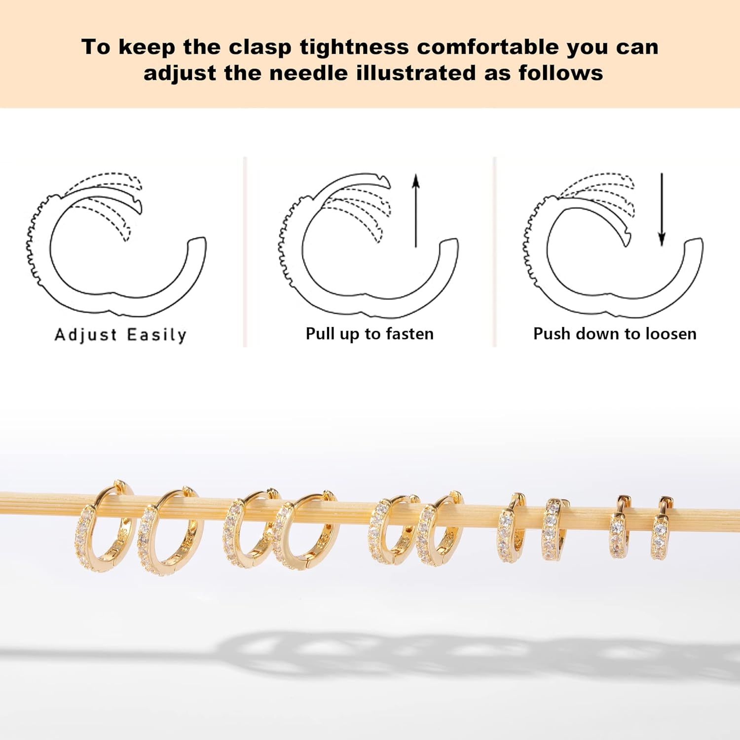 Menu Other Items Feedbacks About Us Contact Us Add To Favorites 5 Pairs Tiny Huggie Hoop Earrings for Women, Lightweight Mini Cz/Cubic Zirconia Hoop Earrings Set for Women'S Cartilage Helix Lobe Ear Piercings Small Hoop Earrings 5/6/7/8/9Mm Product Description Huggie hoop earrings: One package comes with 5 pairs different size mini gold huggie hoop earrings include 5mm 6mm 7mm 8mm 9mm, meet your need for ear multiple piercing. Cartilage hoop earrings: In particular 5mm 6mm 7mm these tiny hoop earrings, are suitable for cartilage/helix/rook/tragus/daith/snug ear piercings. 7mm 8mm 9mm these small hoop earrings suitable for low lobe/2nd lobe/3rd lobe/conch/cartilage/helix ear piercings. Lightweight cute hoop earrings: It is made of very light brass base and plated with 14k gold and white gold. These cz hoop earrings are very light and cute. They can hardly be felt when worn. Cubic zirconia hoop earrings: These small hoop earring inlaid with cubic zirconia. It is sparkling and dazzling that makes you stand out in the crowd, and you will received a lot compliments. Hinged hoop earrings: Every customer is our valuable asset, and we put the customer's needs first. Please feel free to contact us when you have any problems, we will reply and solve within 24 hours. Item Specification Style Huggie-gold-white cubic zirconia Metal stamp 14K Resizable No Gem Type Cubic Zirconia Material Brass Metal copper, 14k gold, white gold Department womens Back finding Hinged Hoop Number of stones 10 SHIPPING FREE FAST SHIPPING FREE SHIPPING We are always working hard to ensure your package arrives as soon as possible. Please understand that some factors like weather, high postal traffic, and the performance of shipping companies are outside of our control. We offer free shipping to the lower 48 states. We do not accept P.O. Boxes. Please provide a physical address. If you have a problem or question regarding your transaction please contact us immediately. We will work with you to resolve any problem you may have. Thank you