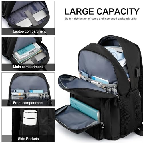 Return Policy Fast Delivery Trusted seller Travel Laptop Backpack, Lightweight Casual School Backpack for Teens, Slim Durable Backpack with USB Charging Port, 17.3 Inch Anti Theft Water Resistant Computer Bag Daypack for Men Women, Black Product Description LARGE CAPACITY BACKPACK WITH LAPTOP COMPARTMENT: This black laptop backpack for men women has a simple appearance and lightweight material. T is an independent laptop protection compartment, which can fit a 17.3 Inch laptop. The front of the computer backpack also includes 4 pockets of different sizes, which can store passports, power banks, pencil cases, clothes and other items needed for daily school, study, office and travel. USB CHARGING PORT: The travel laptop backpack is equipped with an external USB port and a USB conversion cable, which is convenient for charging mobile phones and other electronic devices while walking. The inner pocket design of the laptop backpack for men can prevent power bank from moving in the inner space. (Note : power bank is not included) ANTI-THEFT POCKET & LUGGAGE-STRAP: The travel backpack has an embeddable luggage strap to release the pressure on the back and shoulders during use. The invisible pocket on the back of the school backpack for men can protect your phone, wallet and other valuables from being lost. The foam padded top handle increases the longevity of the backpack for men for all basic daily needs for school, college, work, travel, business trips. ERGONOMIC & WATER PROOF FABRIC: Comfortable airflow back design, large school backpack made of highly elastic breathable sponge and honeycomb shock-absorbing fabric, thick and soft, heat dissipation fast. Widened, adjustable shoulder straps reduce weight and protect your back and shoulders. High-density polyester waterproof oxford cloth keeps your belongings from getting wet. VARIOUS OCCASIONS &100% SATISFIED: This laptop backpack can also give the backpack as a gift to school student, teacher, father, son,boys exquisite and practical. A great choice for office work backpack, travel backpack for men women, daily use basic backpack, teachers backpack, school bookbag, school supplies, college backpack all indoor and outdoor activities. Age:over 3 years old Shipping Returns Payment Shipping Shipping is FREE to all addresses other than APO/PO boxes in the lower 48 states. All our stock ships from US-based warehouses. Shipped via USPS or UPS (depending on location and package weight) Unless stated otherwise, all orders will ship within 24-72 hours of your payment being processed. Check our feedback to see the great reviews of FAST shipping we offer. Returns Seller does not accept returns Payment We currently accept payment via eBay managed payments only. Once payment is cleared, we will dispatch your shipment within 1-3 business days. Please refer to the "Shipping" tab for more information regarding shipping speed to your destination.